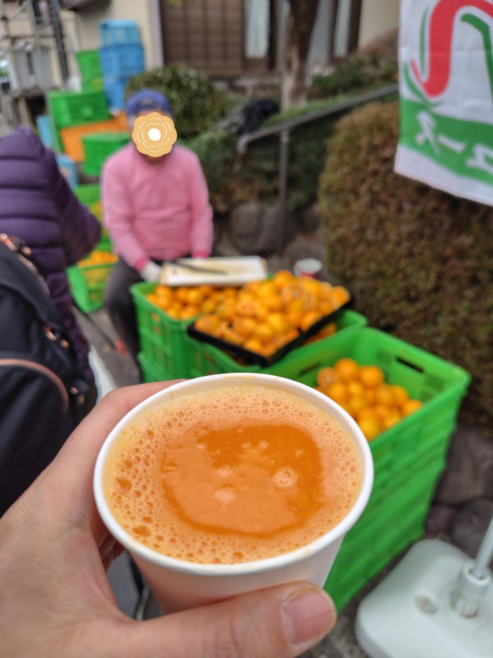 河津町まで桜を見に来たら、生しぼりみかんジュースは絶対に飲まなきゃ。 -