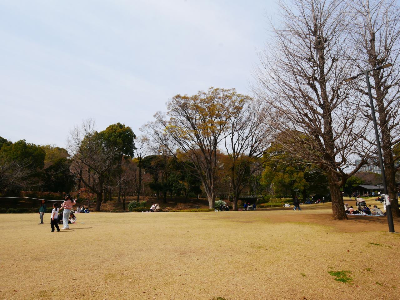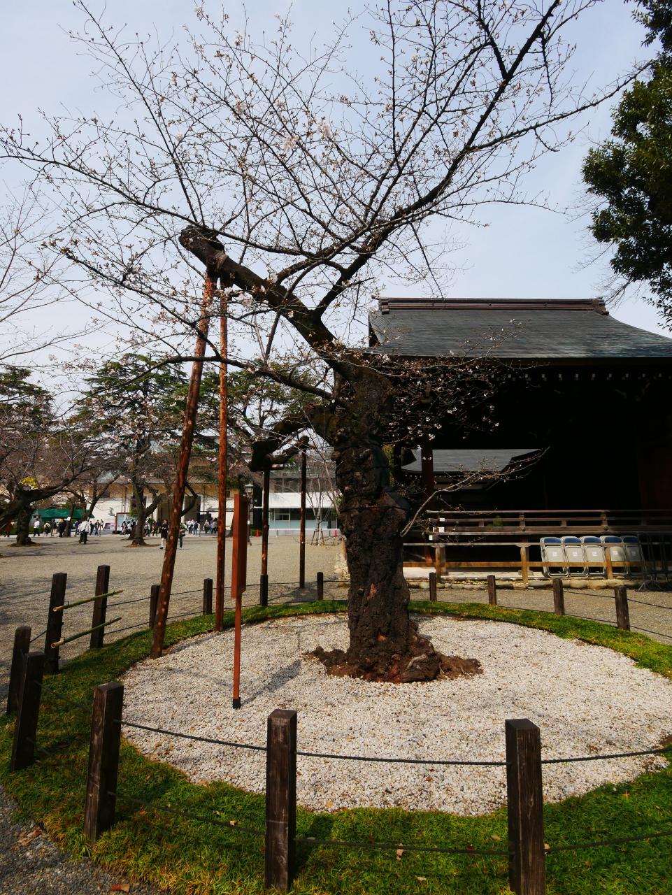 ソメイヨシノがたくさん植えられていて、その中の1本は近寄れないように囲われています。 -