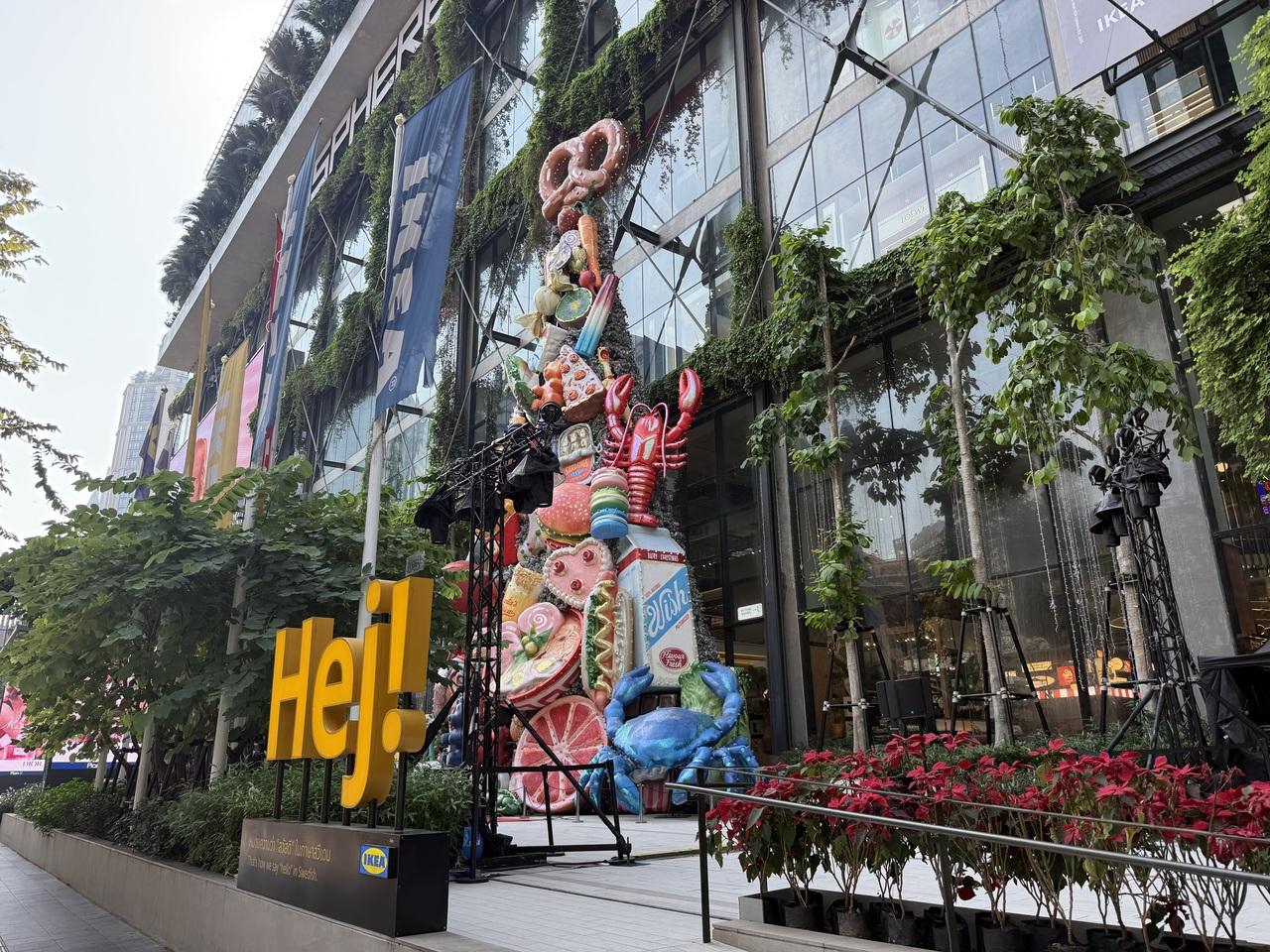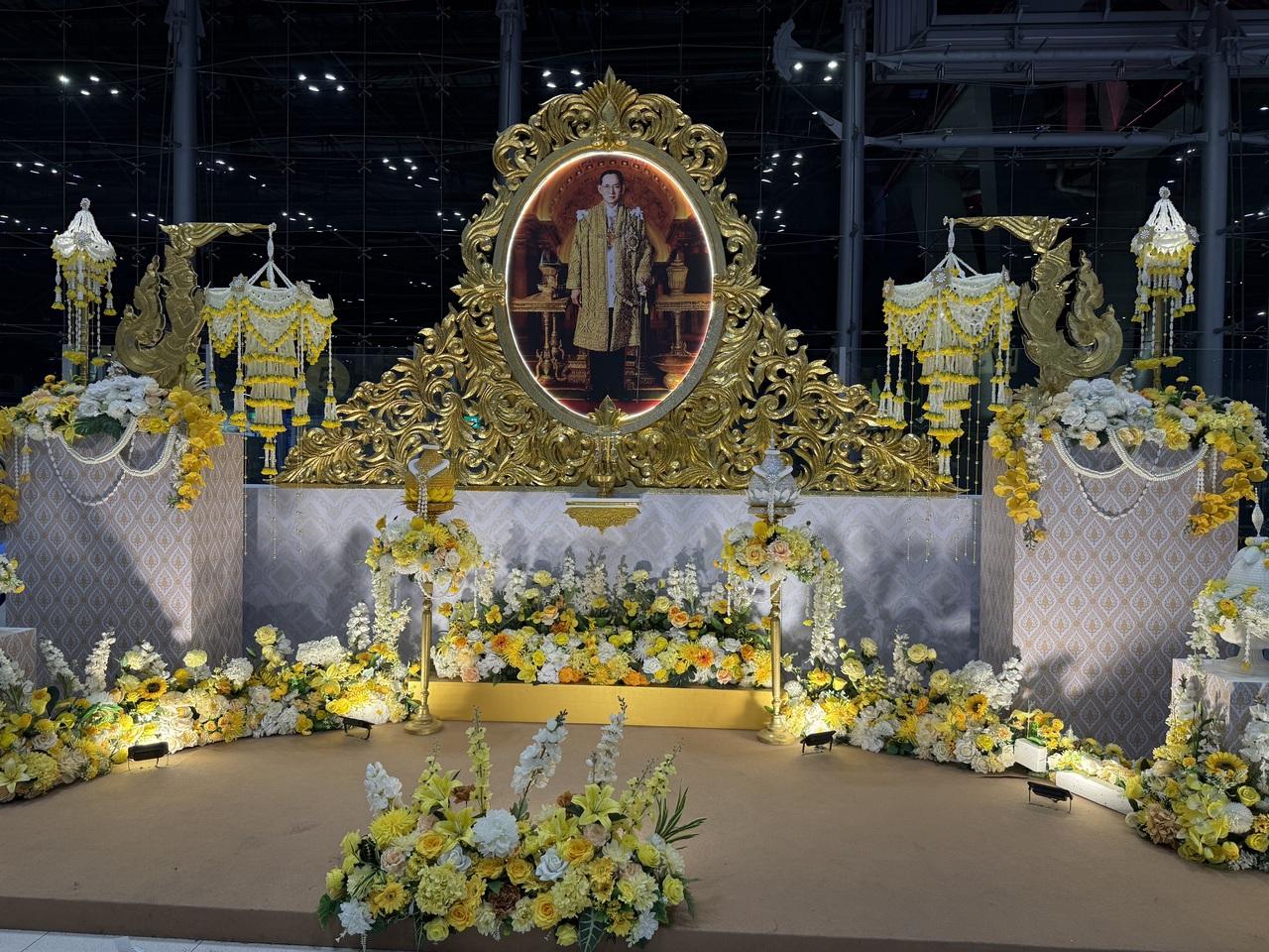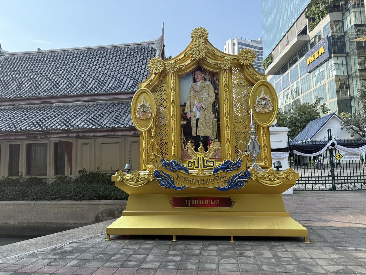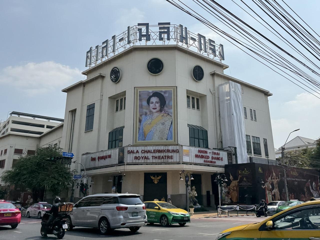 2025年10月に逝去されたタイ・シリキット元王妃の写真が建物にでかでかと。