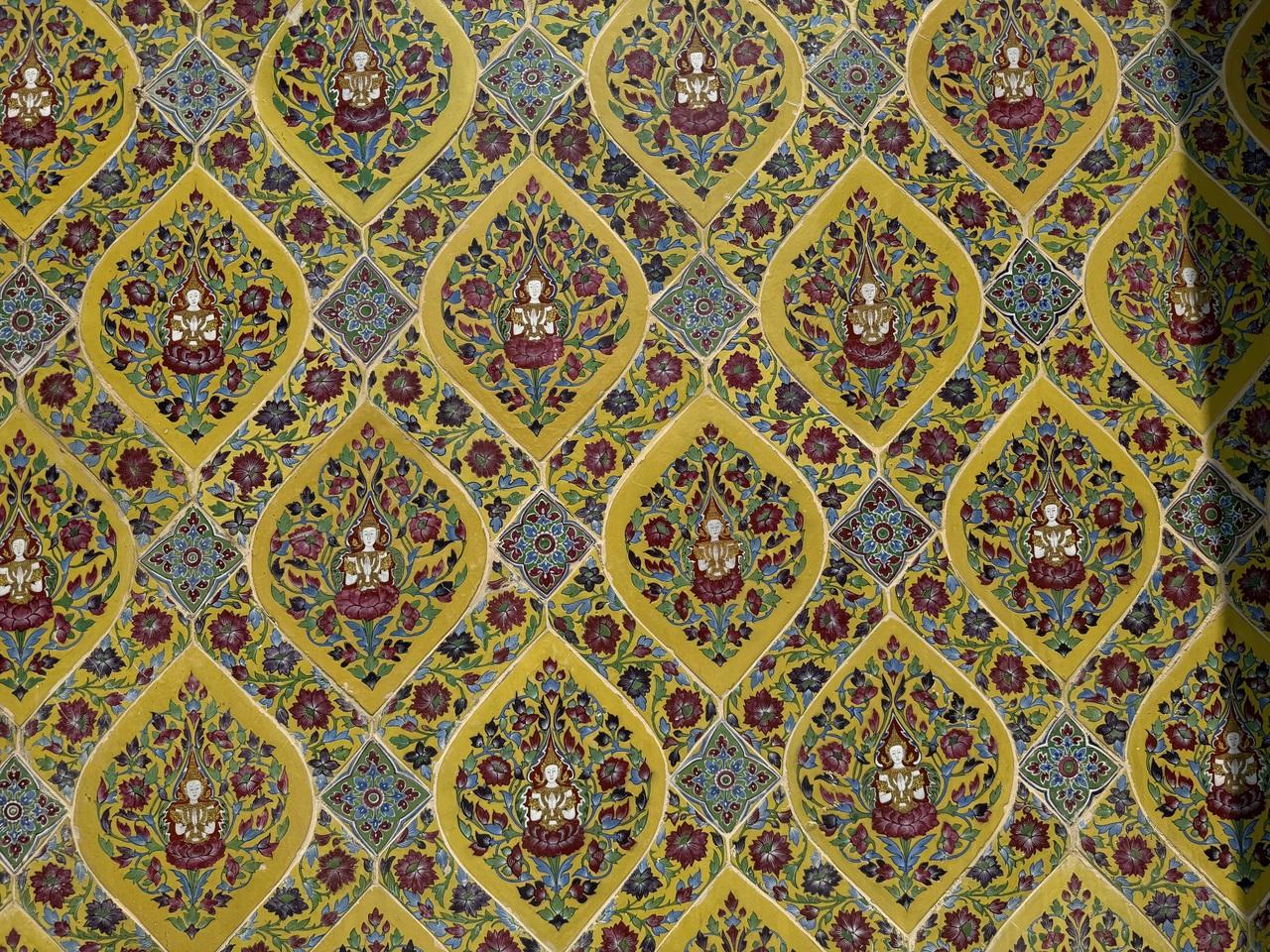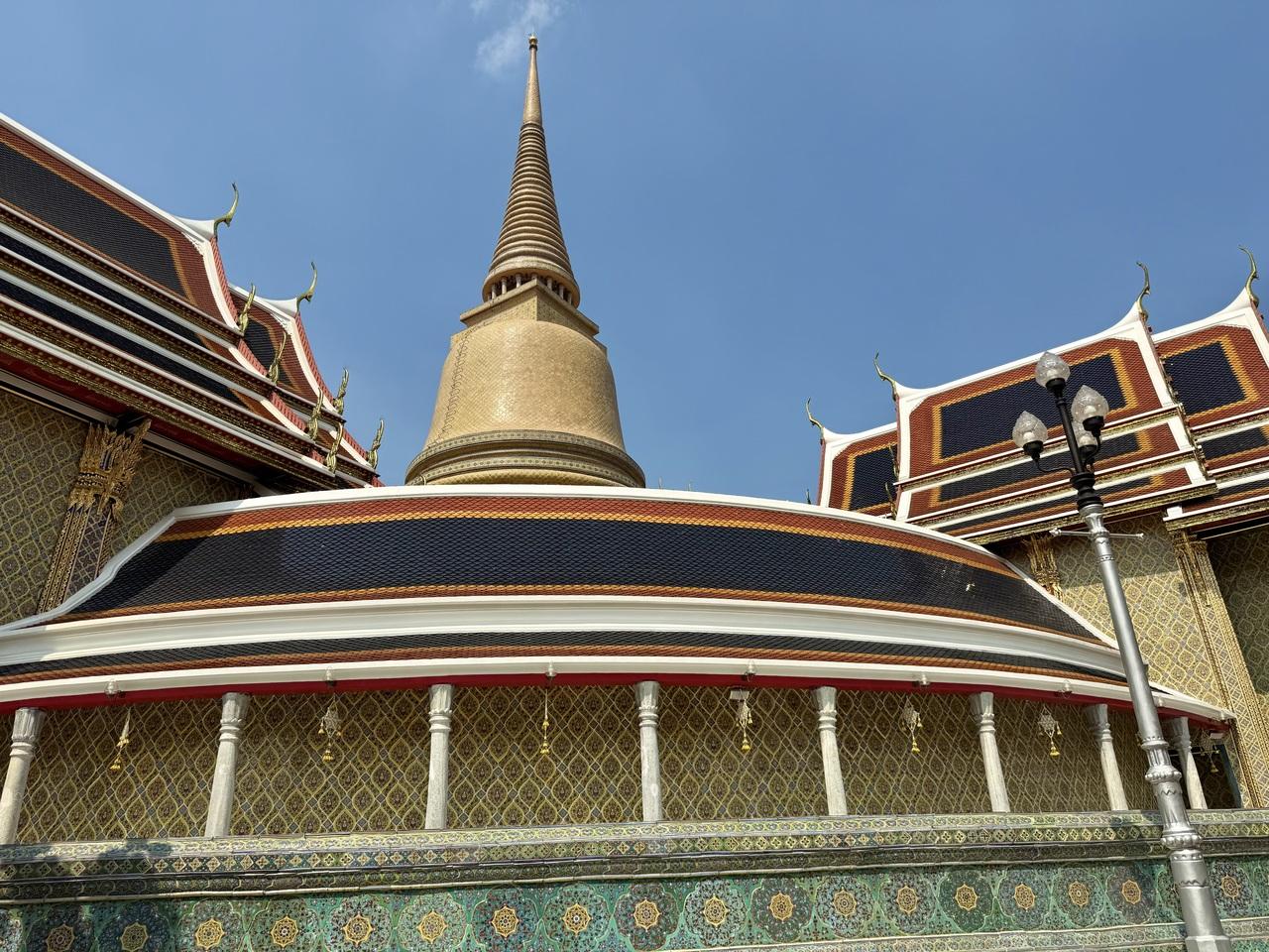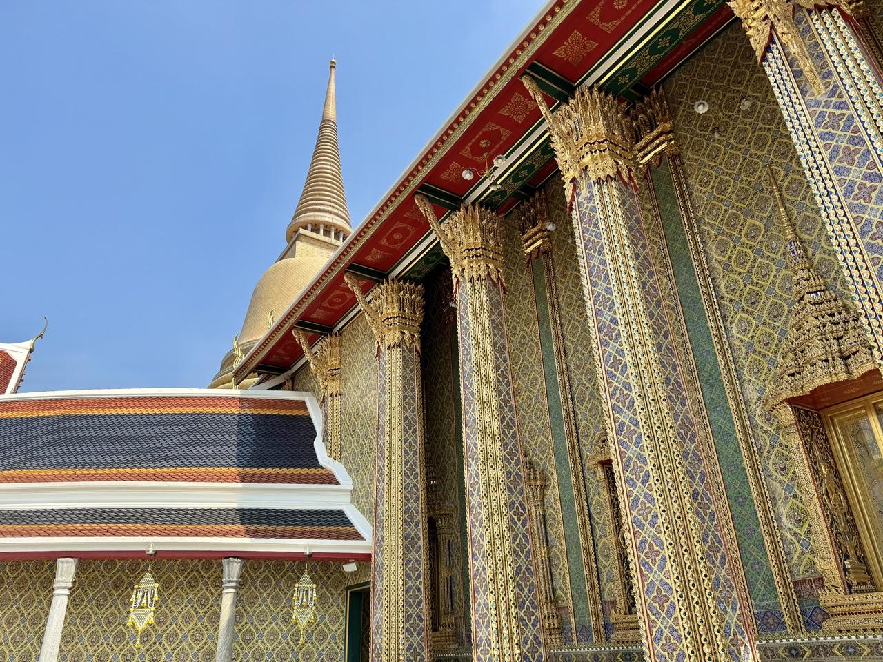 建物や仏塔の壁にはびっしりモザイク磁器が貼られ、太陽光を受けて、より煌びやか。