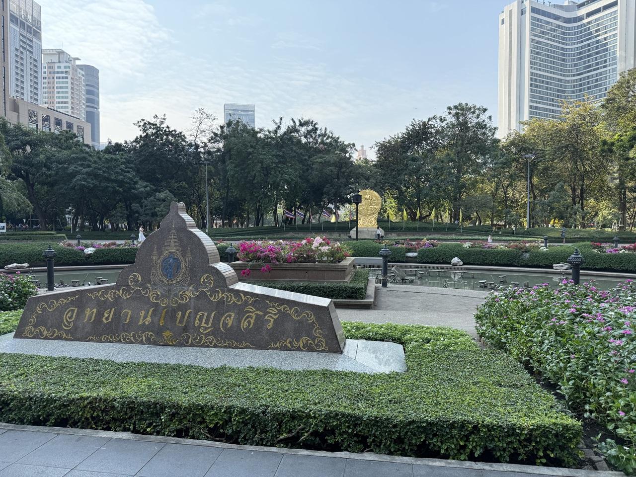 店からすぐ近くの【ベンチャシリ公園】のベンチに座って、さっき買ったマンゴースティッキーライスを食べよっと。