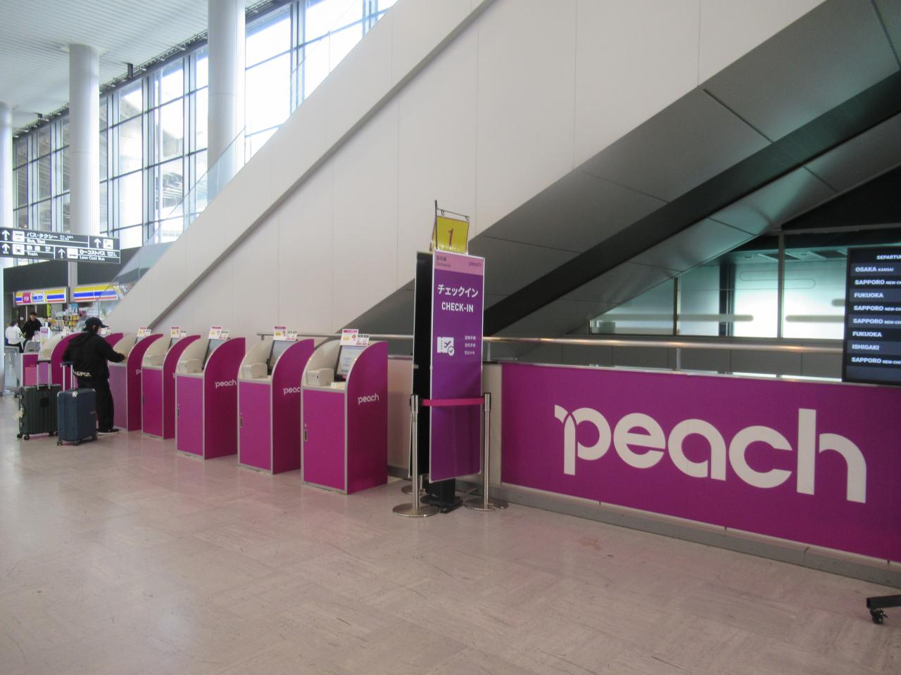 成田発のLCCは普通第3ターミナルなのですが、ピーチ航空だけは第1ターミナルです。成田空港第1ターミナル 空港