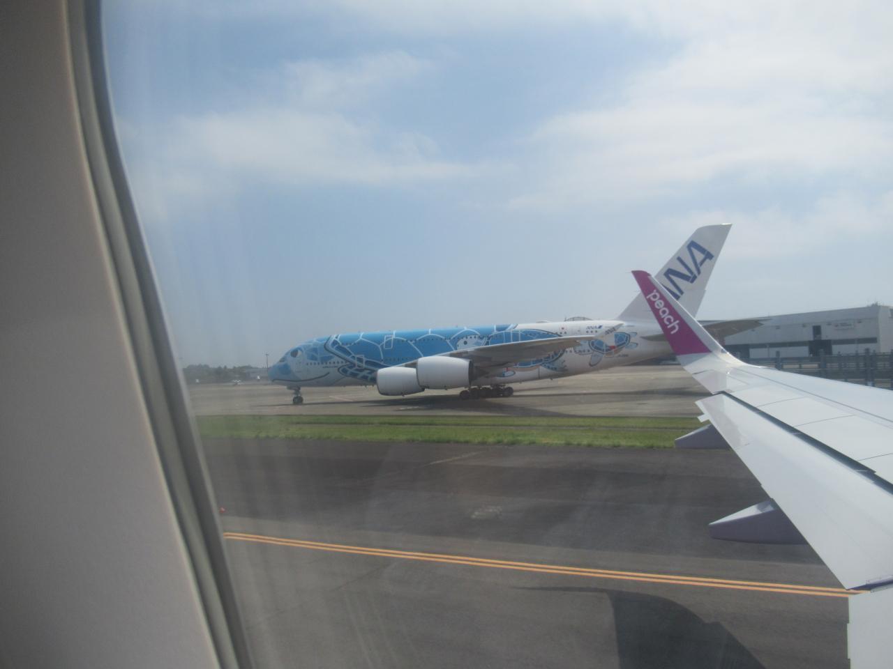 ANAのエアバスA380型機の特別塗装機、「FLYING HONU(フライング・ホヌ)」。