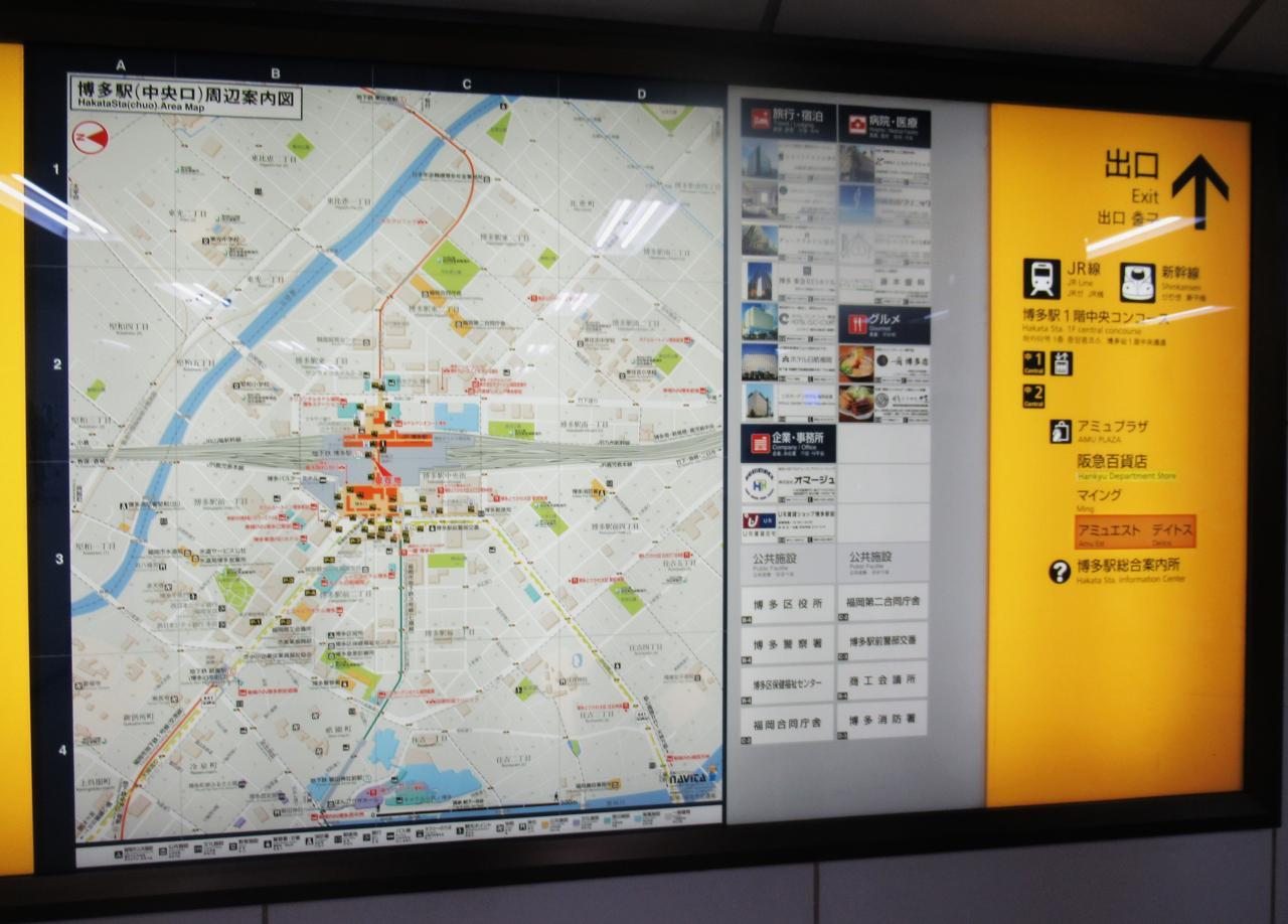 観光案内所で紙の地図を貰いたかったけれど、駅があまりに大きくてその場所さえ不明。博多駅 駅