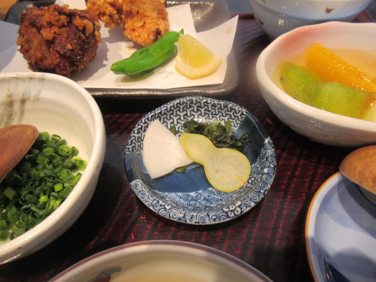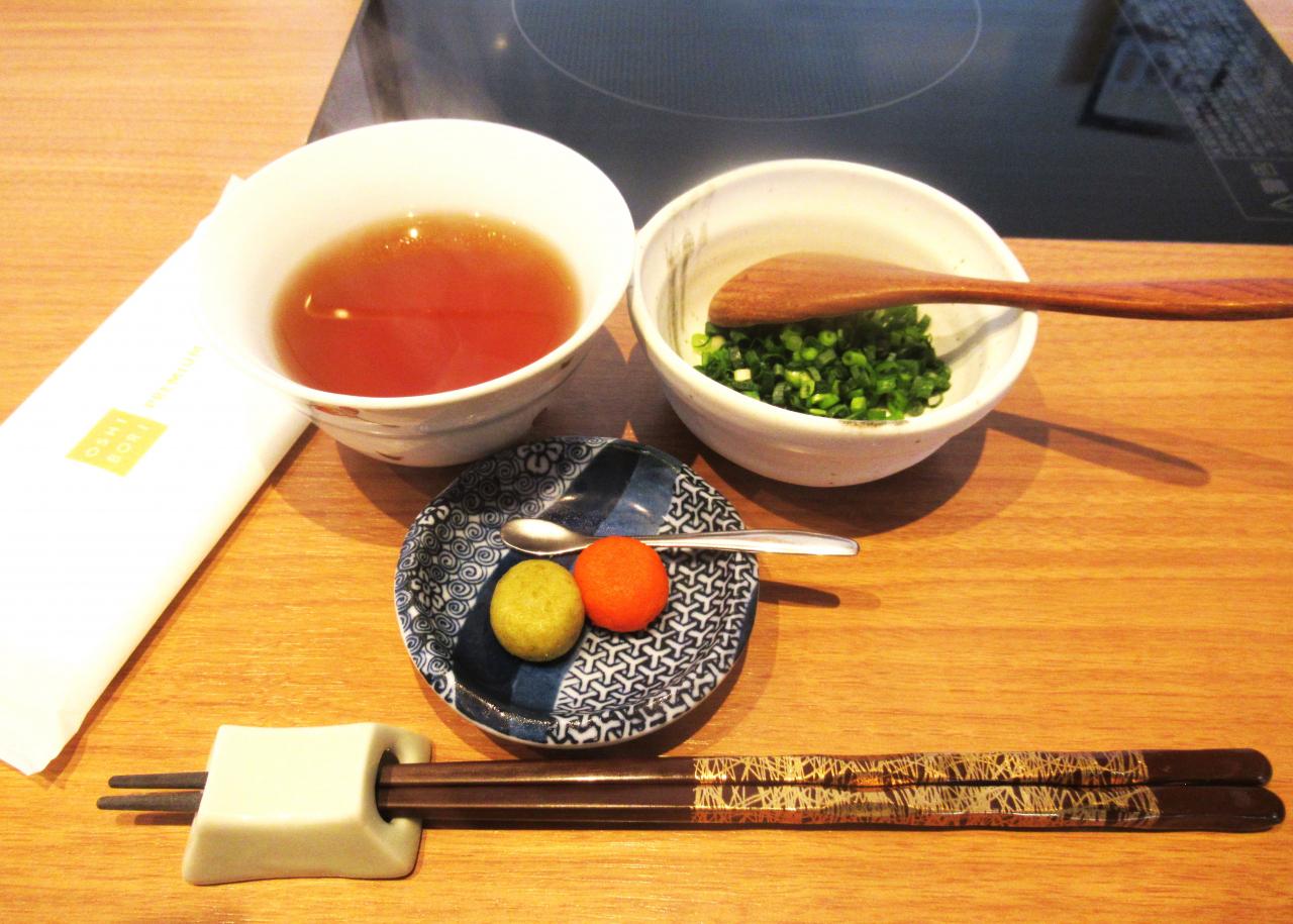 ほうじ茶・薬味の小ネギ・柚子胡椒・紅葉おろし