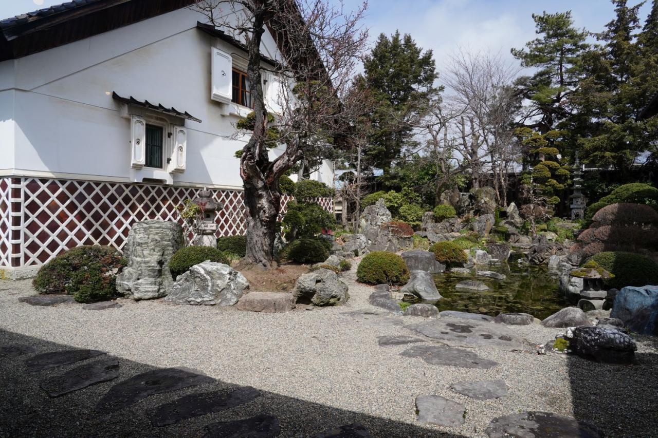 石敷きの土間の向かいには、中庭がある。その左手に見えているのが、酒蔵である。