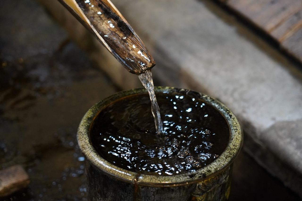 一角に、仕込み水が湧き出ていた。飲んでみると、とても柔らかい。美味しいお酒の源である。