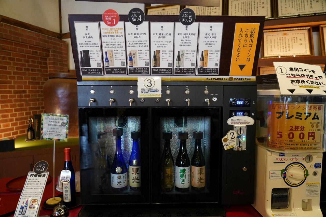 売店に立ち寄り、試飲をさせてもらう。ここでも、最近よく見かけるコイン式の試飲器があった。普通のと特別なのがあり、それぞれ二杯で三百円と五百円である。普通の方は二種類だけいただき、特別な方は、六種類すべてを試した。中でも、四合瓶で一万三千二百円もする『東光 純米大吟醸 袋吊り 十八』は、必ず飲んで欲しいと言うだけはあり、香りも飲み口もとても良く、滑らかで上品な味わいであった。
