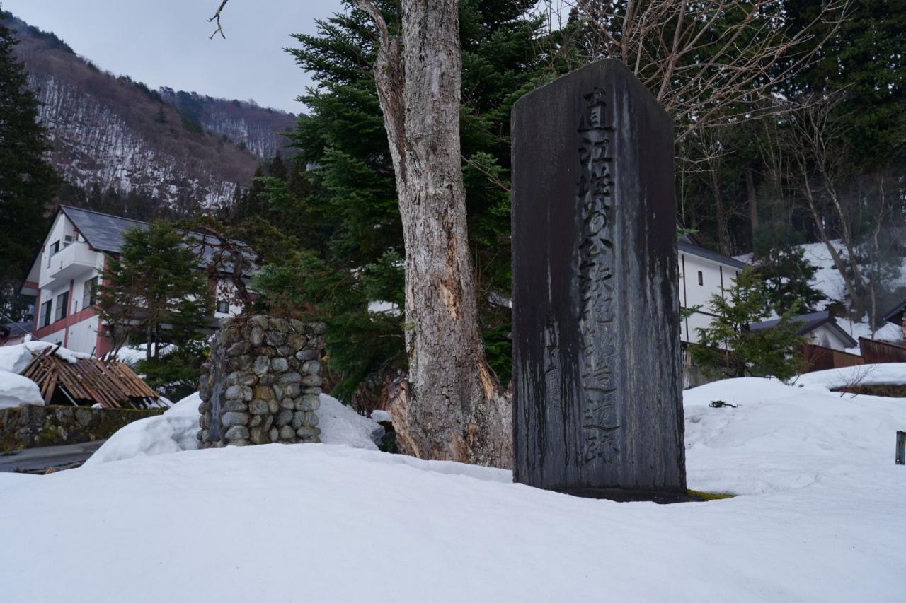 バス停から少し下ると、石碑が立っていた。『直江城州公鉄砲鍛造遺跡』と刻まれている。案内板を読むと、かの直江兼続が、ここ白布温泉で火縄銃の製造を行っていたそうである。