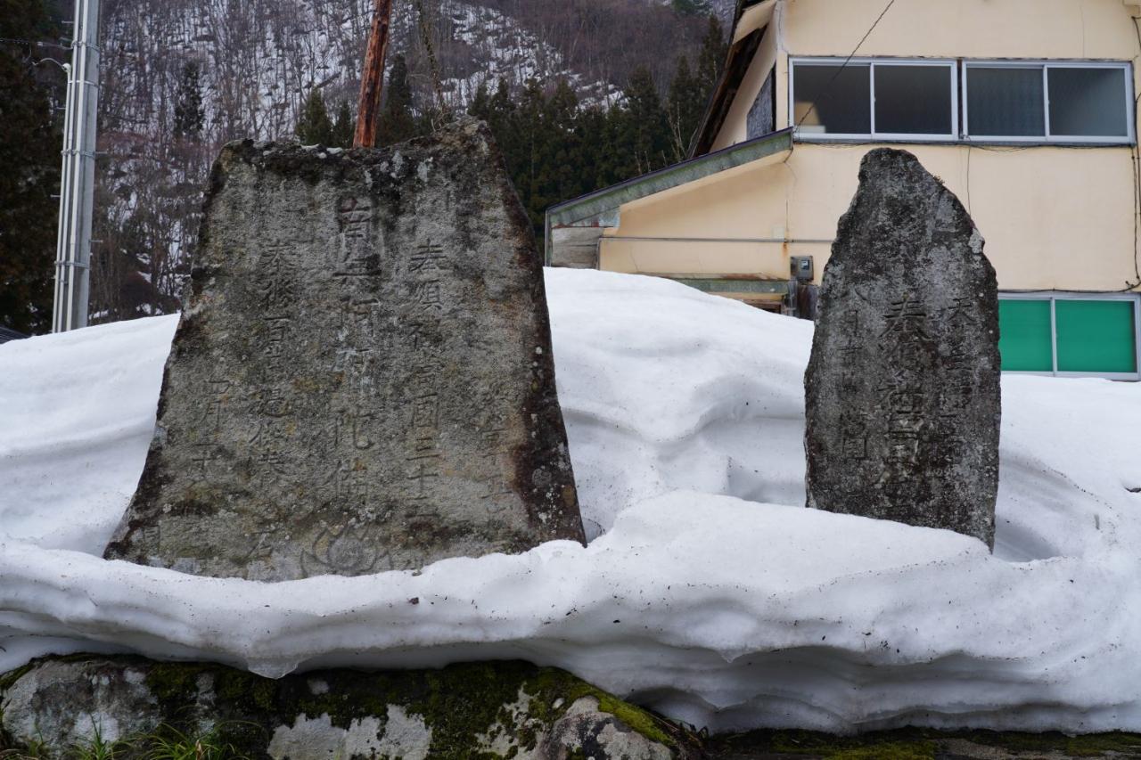 雪に埋もれた石碑もあった。この辺りは、古くから集落の神聖な場所であったそうだ。