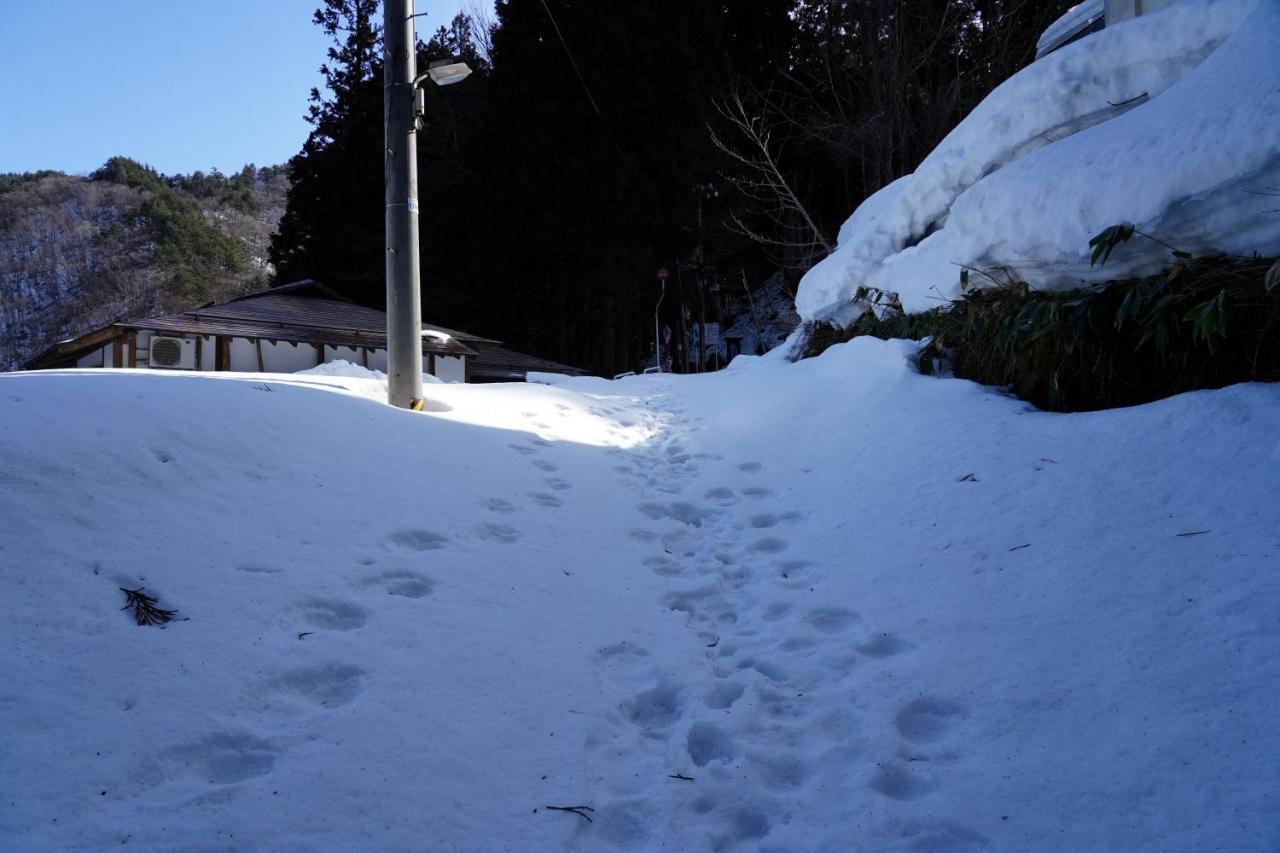 温泉街の反対側の外れには、薬師堂への遊歩道の入口がある。しかし、この季節は積雪があり、辿り着くのは難しい。それでも、行けるところまで行ってみることにした。