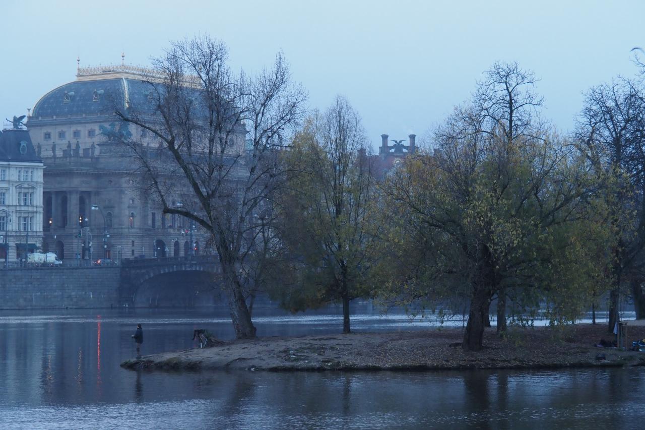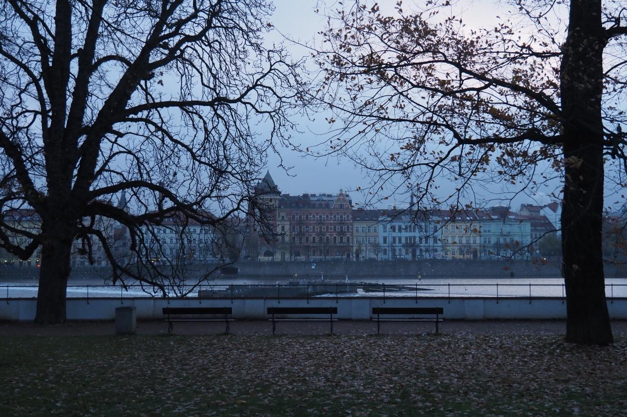 翌朝も早起きしてヴルタヴァ川沿いを散策。