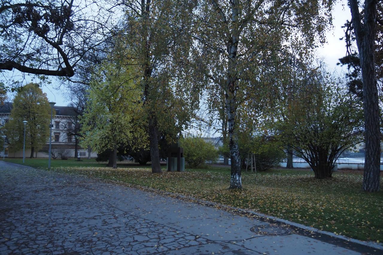広場中央の並木を覗き込むと