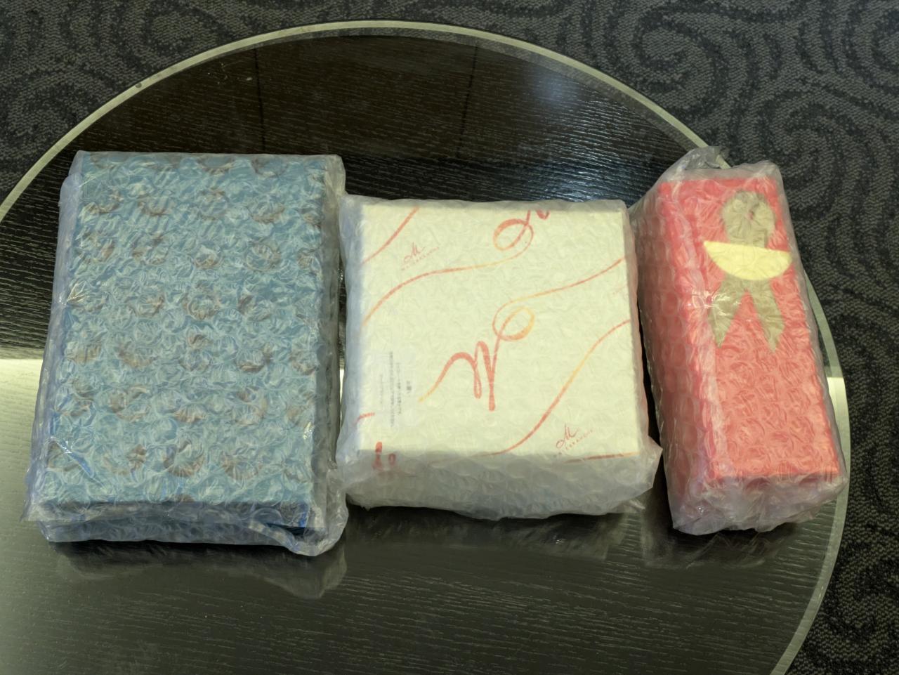 そりゃペットボトルの水もNGなのに、瓶入りの酒や醤油が手荷物検査で引っかからない分けがない!とにかく「割れてはいけない!」二人共 そこばかり気を取られていた 笑