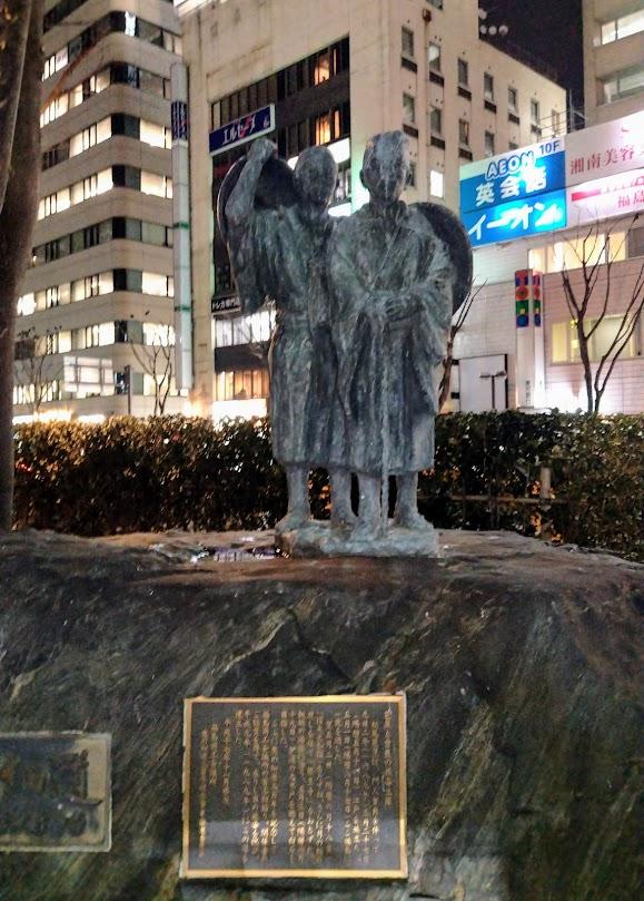 「芭蕉と曾良の旅姿立像」