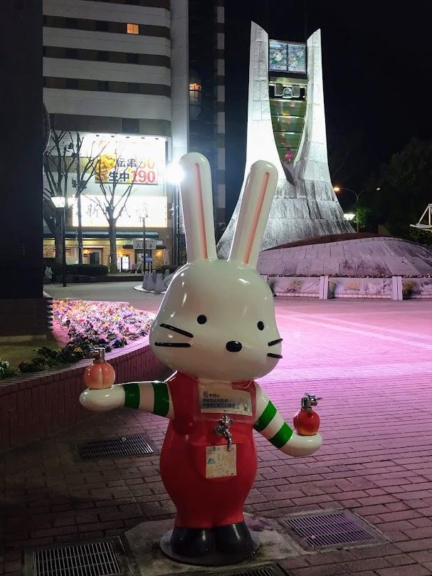 東口広場に可愛いうさぎを発見!「ももりん」の水道です