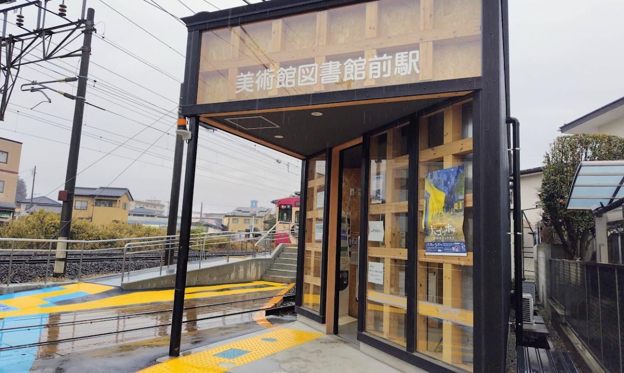 飯坂線「美術館図書館前駅」下車