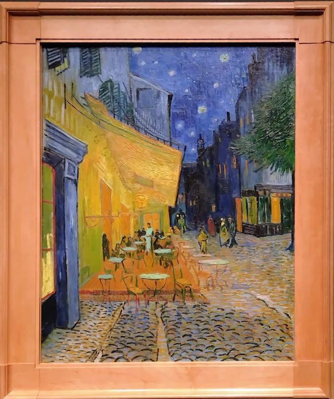 人々のぬくもりを感じる明るい夜のカフェテラス風景は、アルル時代の中でもゴッホが前向きで幸せだったころの傑作のひとつです