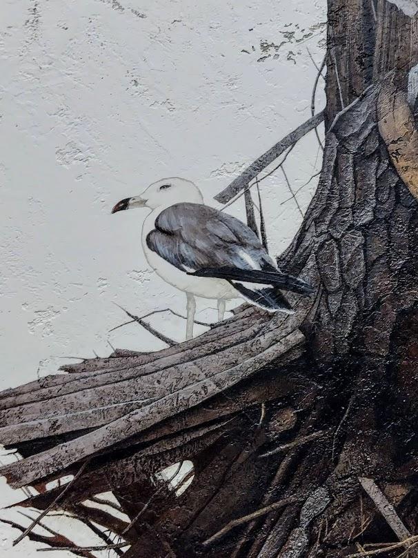 高田松原は作者の故郷で、震災以降繰り返し同地をテーマとする作品を描いている。傷つき朽ちていく樹木の描写に自然への畏怖と被災者への鎮魂の想いが重なる。(解説文) -