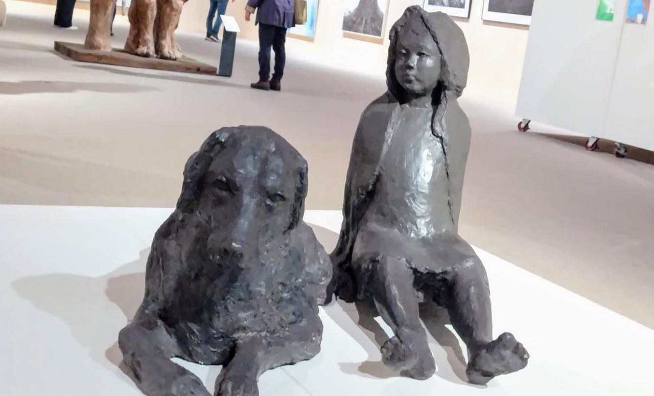 震災後に3点が制作された(Rainbow)シリーズのひとつで、作者の亡くなった愛犬がモデル。少女に寄り添う愛犬の姿に、失われた日常への愛情の念がにじむ。・・・との解説文