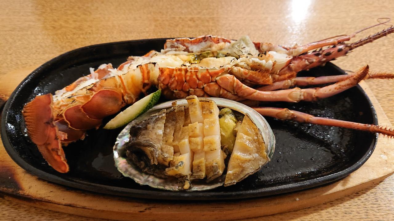 メインの「海鮮陶板焼き」は、伊勢海老の半身に鮑のバターソテー。前回来た時は伊勢海老の半身が2つ、しかもオスとメスの食べ比べが出来ましたが、漁解禁前のためか、今回は半身1つ。でも食べると