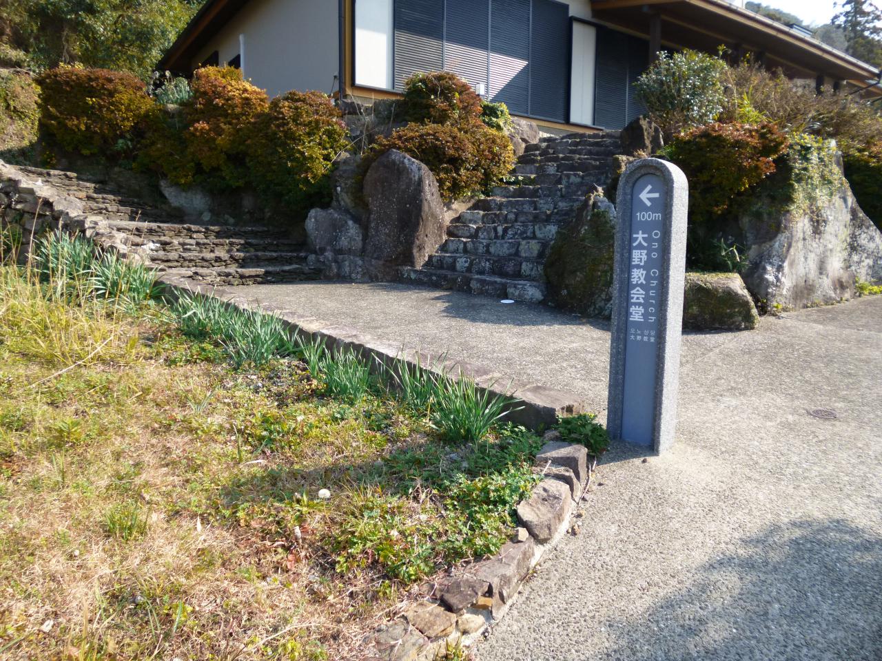 大野集落の中にある大野教会に到着。駐車場からは階段を上がって行きます。