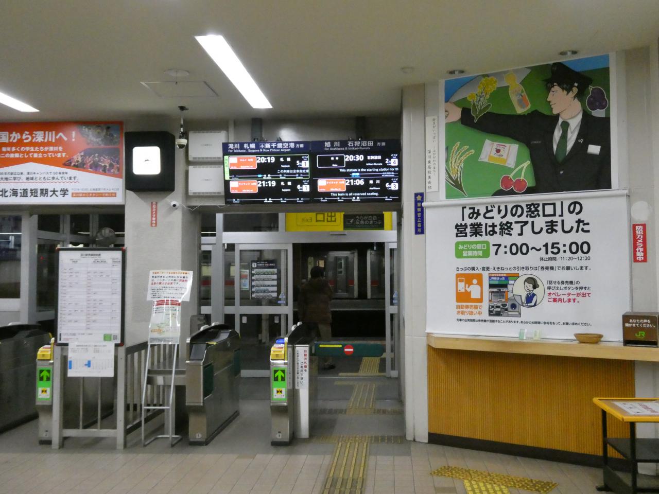駅舎内、みどりの窓口の営業は既に終了していますが、駅員さんはいました。