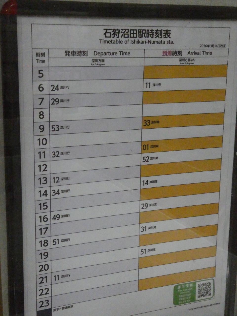 深川駅20:30 → 石狩沼田駅20:51(9435D)