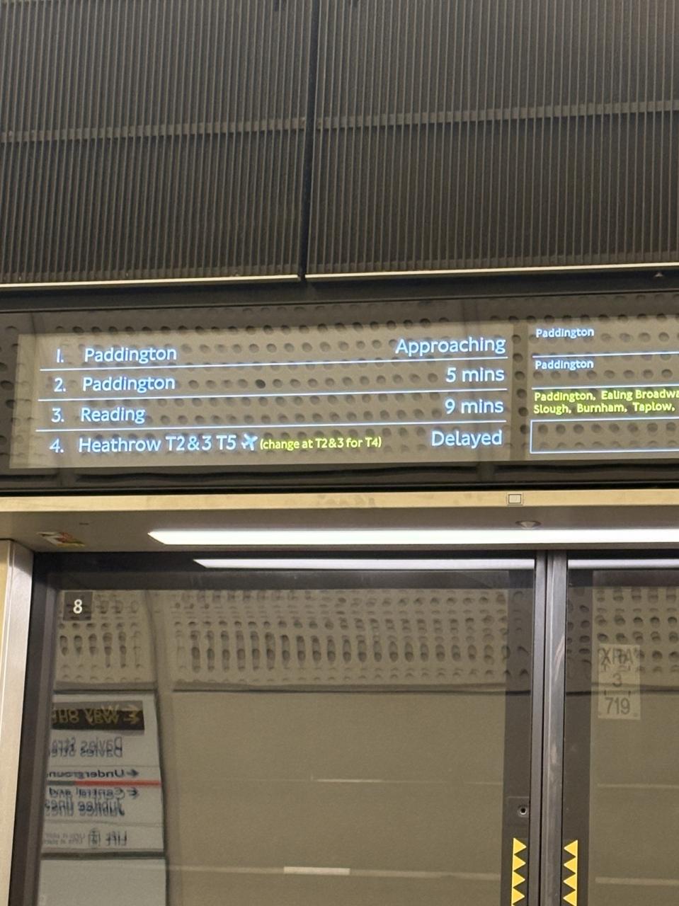 ボンドストリート駅からエリザベスラインでヒースロー空港へ向かいます。