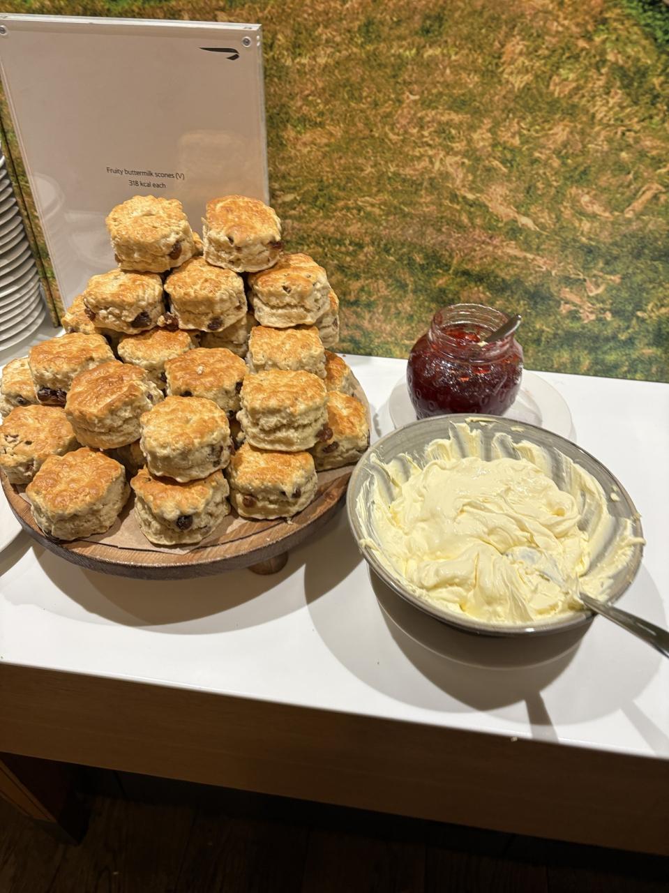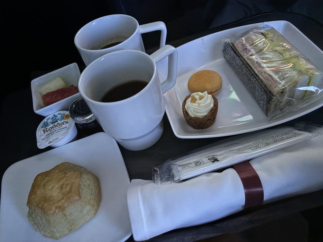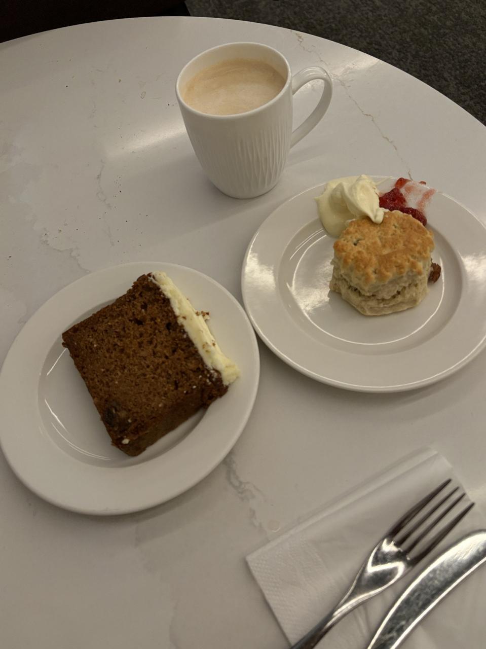 搭乗したらすぐ食事なので、ラウンジではスコーンとキャロットケーキだけ。