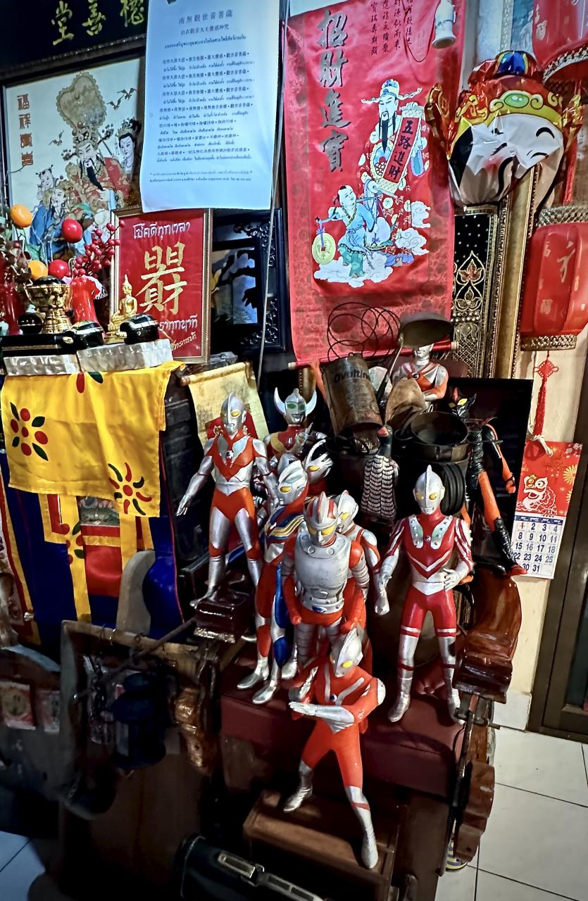 写真:あっ!?壁に「仮面ライダー1号、2号、V3」...あゝ、懐かしい...私の世代ど真ん中やぁぁ~!!こんな南方で再びあなた達にお会い出来るとは...(日本語のポスターではないところがすげぇぞ...)ワット ヤンサンワララーム 寺院・教会