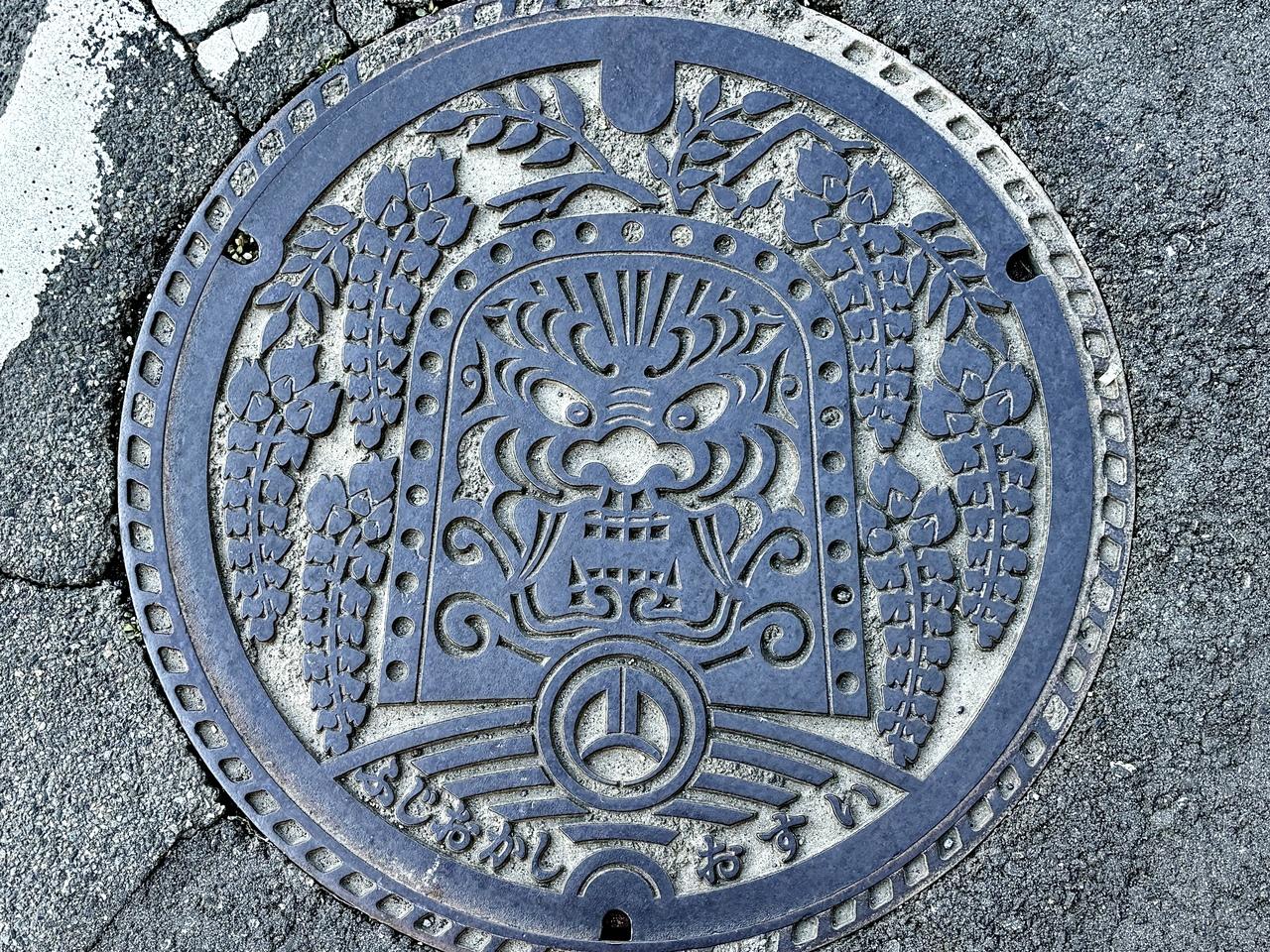 鬼瓦の周囲は藤の花、市名にもあるように藤の花のお祭りもあります。