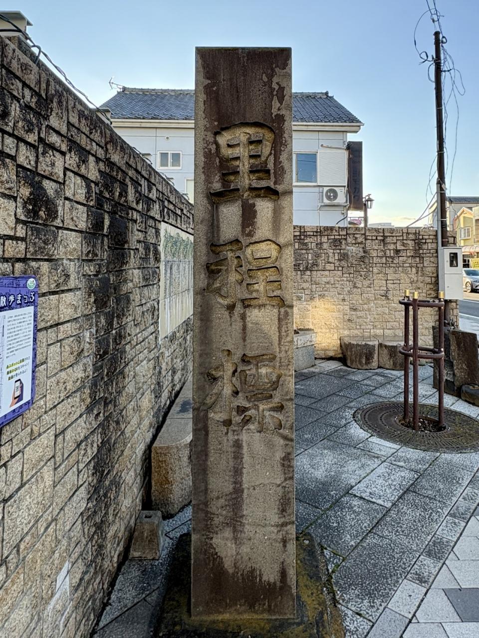 四丁目交差点の小さなスペースに里程標が建てられています。