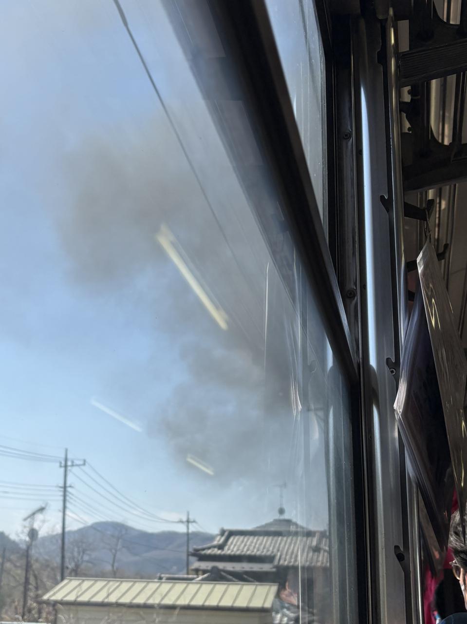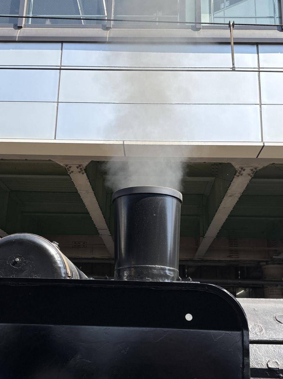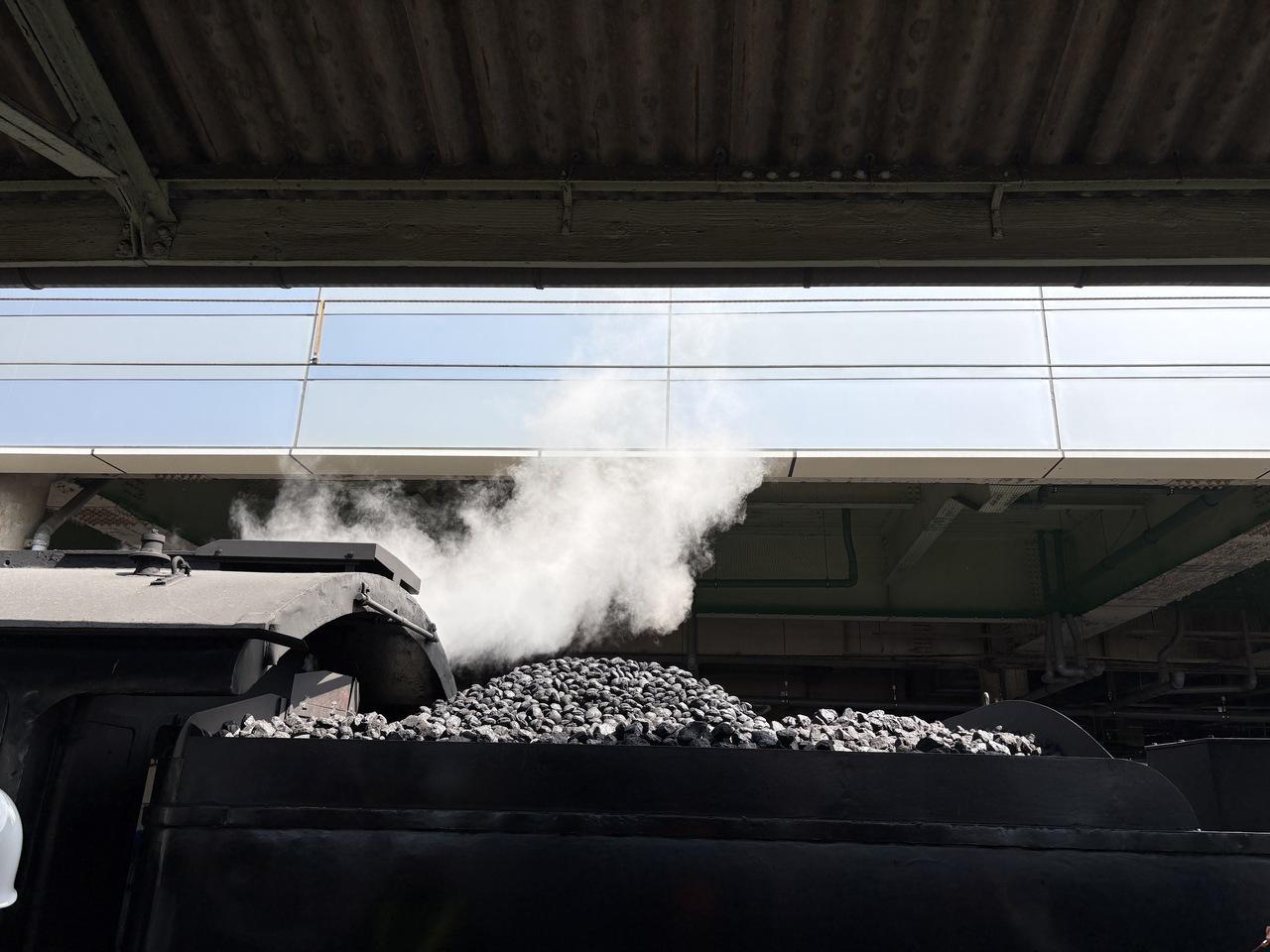 昔のように黒煙モクモクという感じではなく、主燃料として石炭を焚いて走行していますが、補助ボイラーなどには重油等を併用していると考えられます。 -