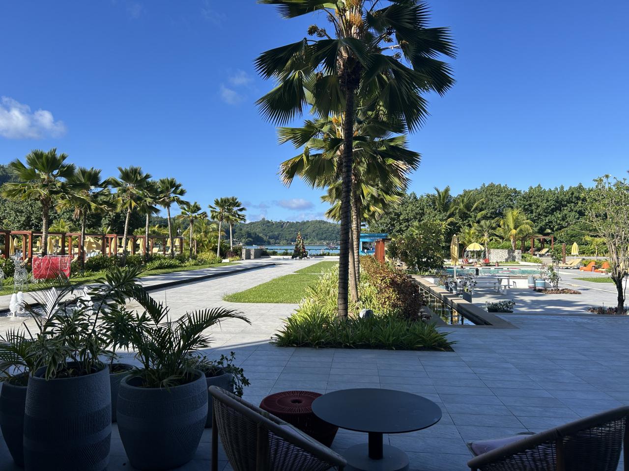 従業員の方も親切で、案内していただいて到着したらこの落ち着くビーチ&プールサイド。