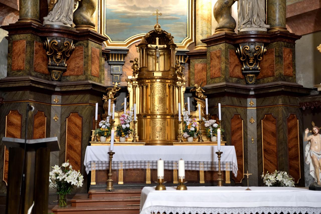 この主祭壇は、キンスキー伯爵の寄進によって建てられた木製の祭壇で、一部には大理石の彫刻が施されています。