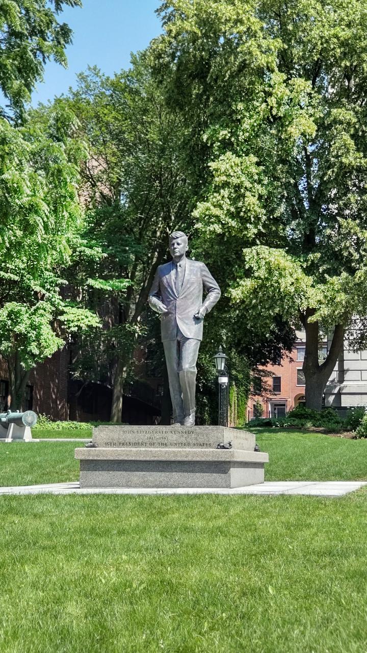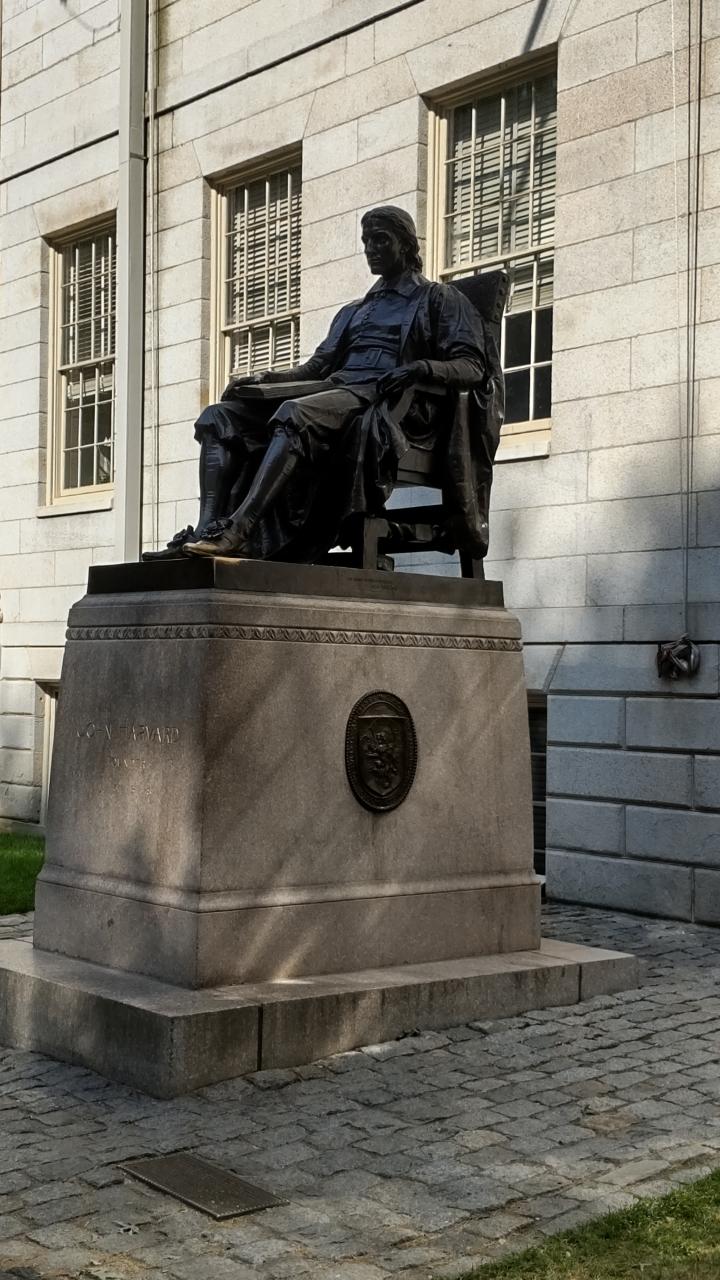 大学の創設者ジョン・ハーバードの座像が置かれている。 -