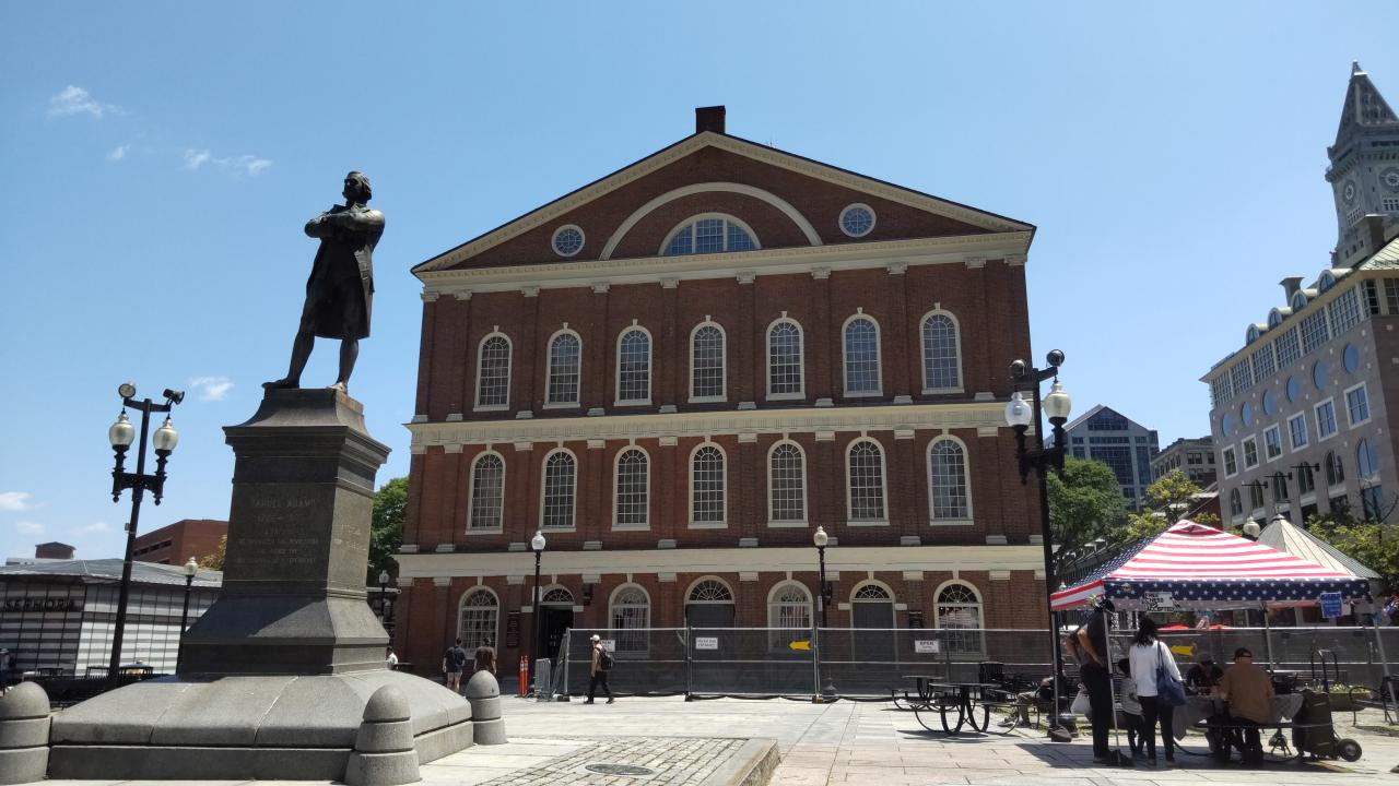 建物の前にはサミュエル・アダムスの像が立ってます。