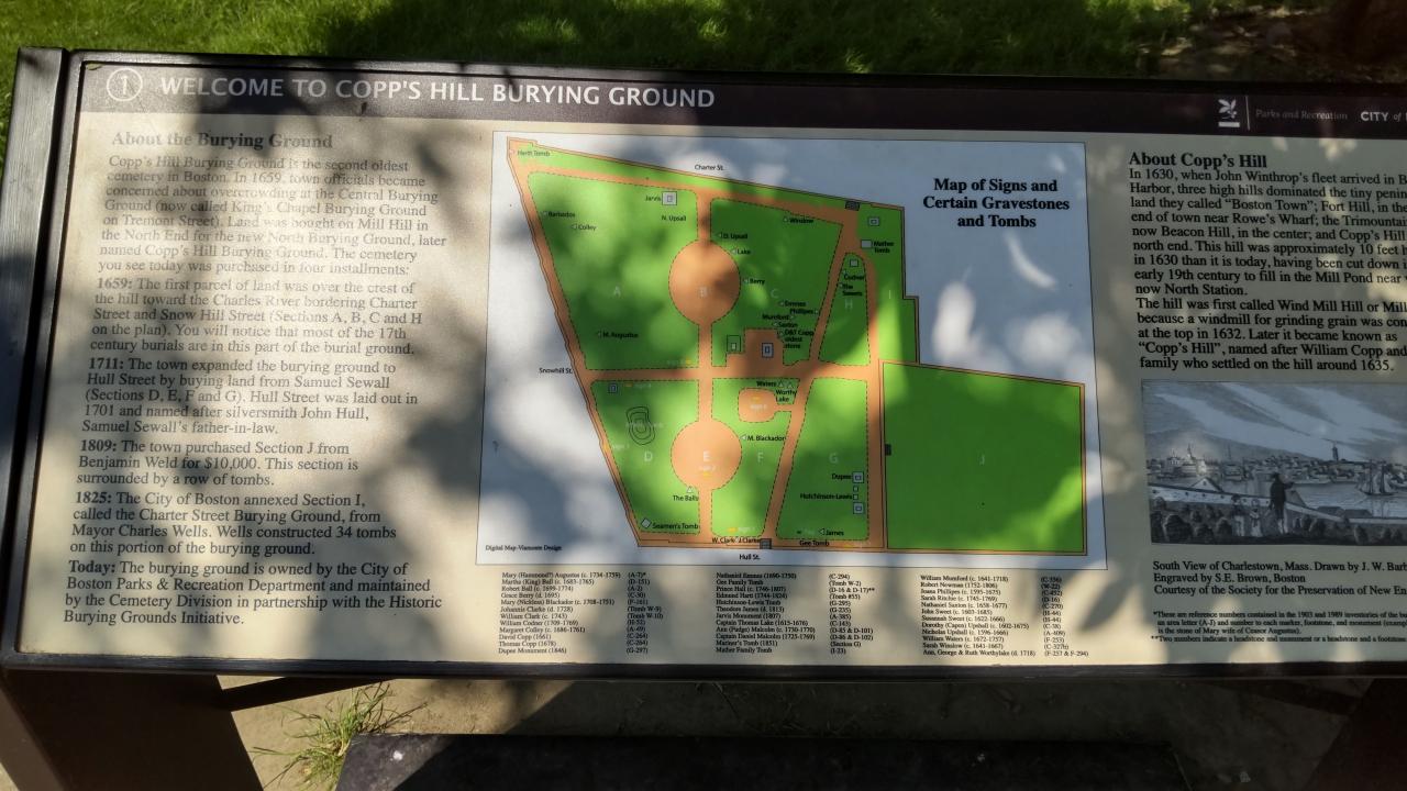 ボストン生まれのベンジャミン・フランクリンが両親のお墓をここに建てたが、劣化したためにボストン市がベンジャミン・フランクリンの業績をたたえて1827年に記念のオベリスクを建てた。