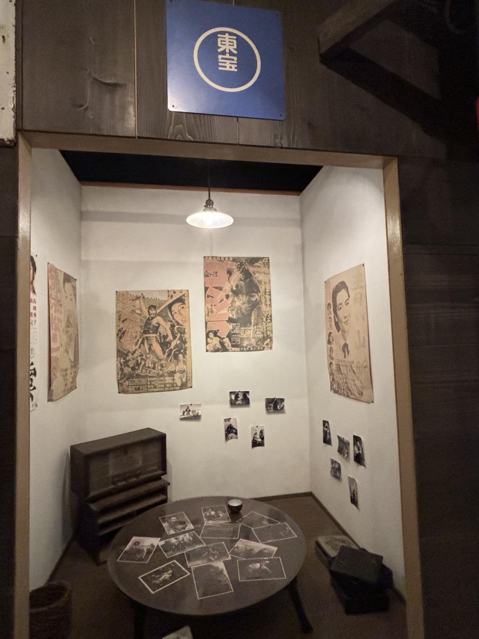 「七人の侍」「ゴジラ」のポスターが見えます。