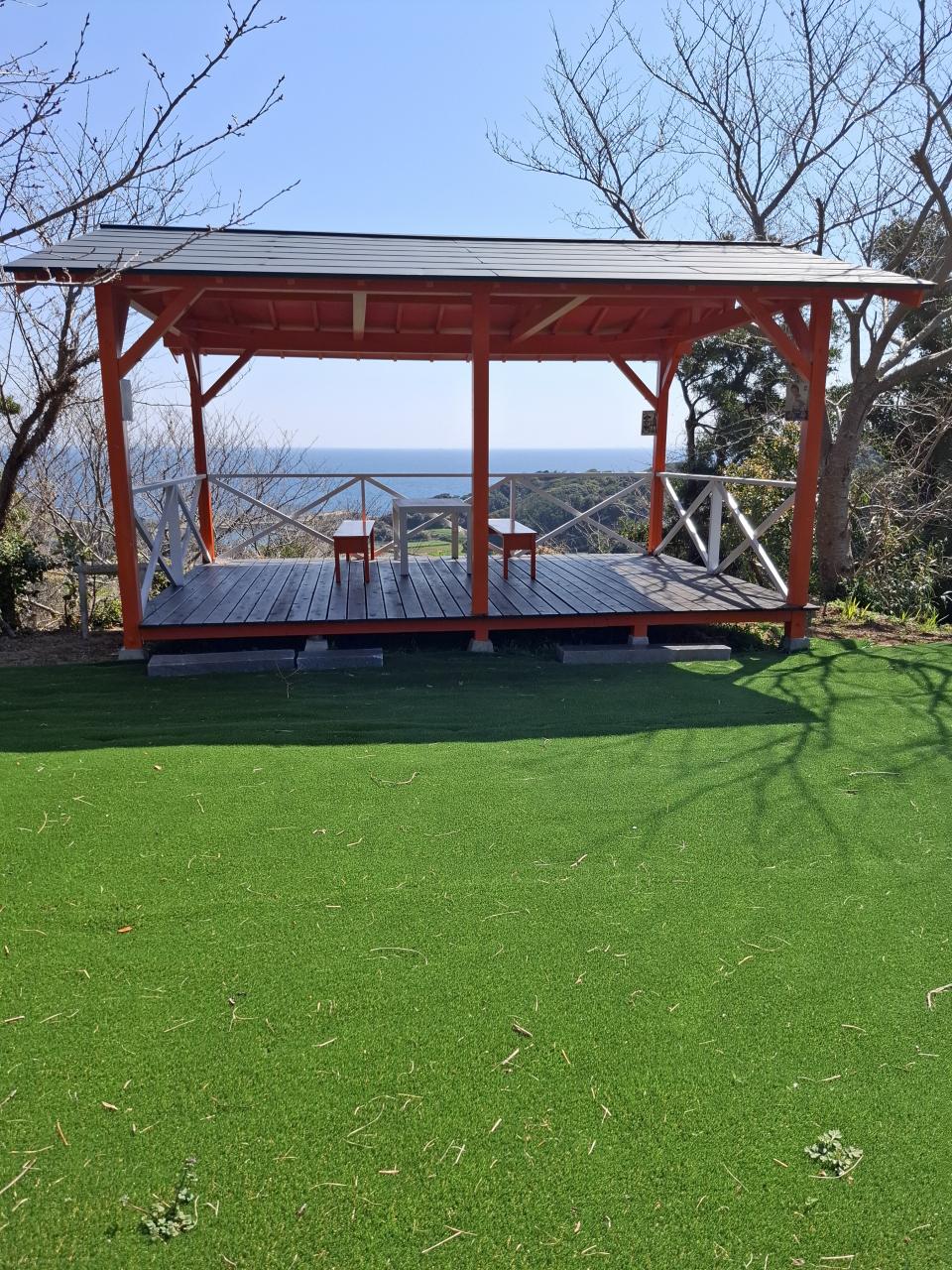 人工芝と休憩テラス。海も見えます。