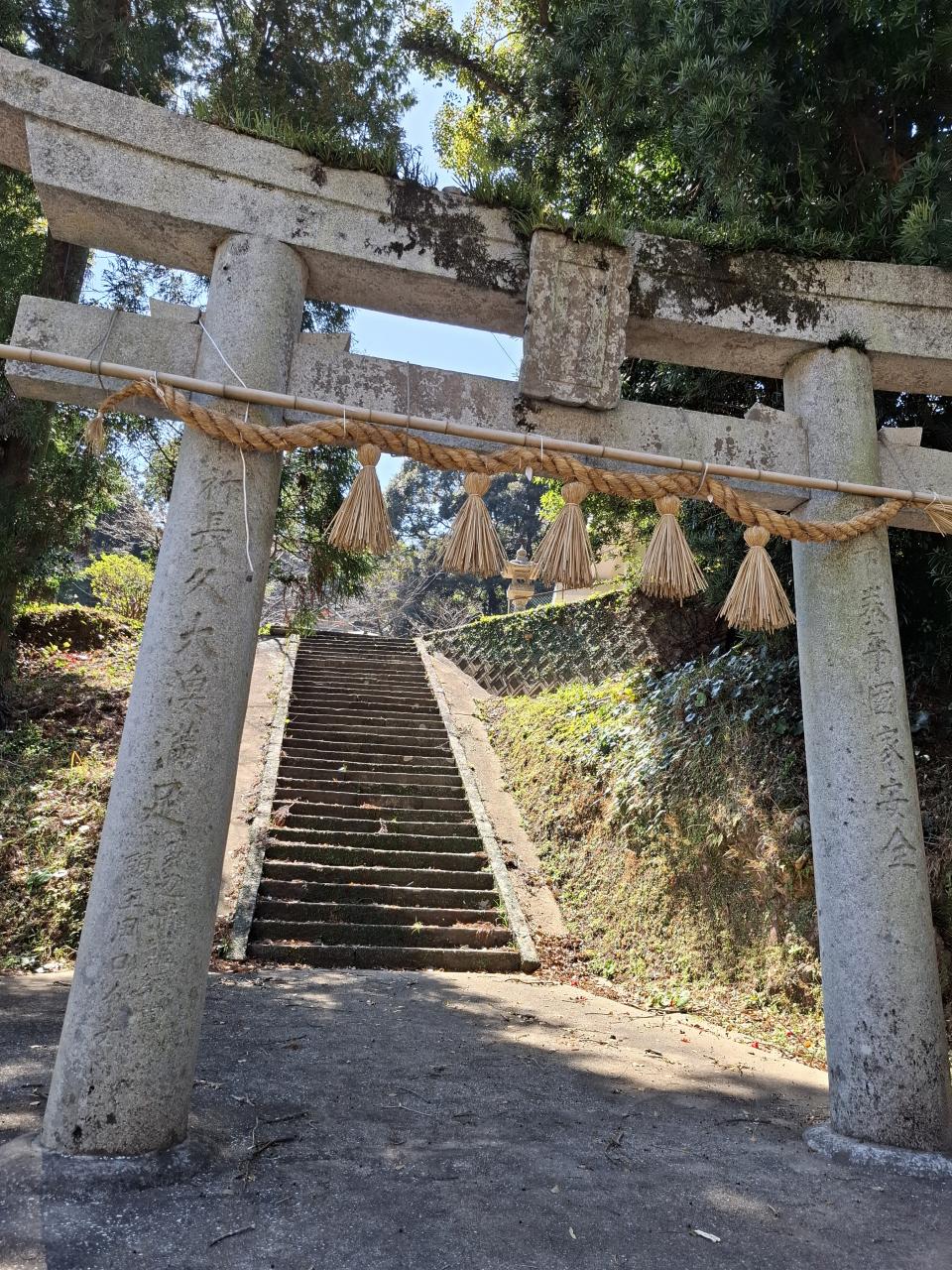 素戔鳴尊、奇稲田姫命、大己貴命をお祀りします。整備された階段です。