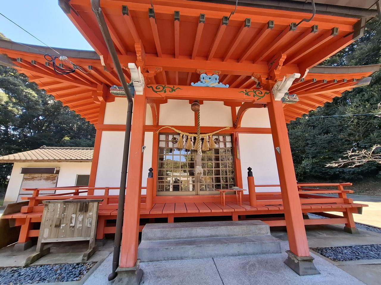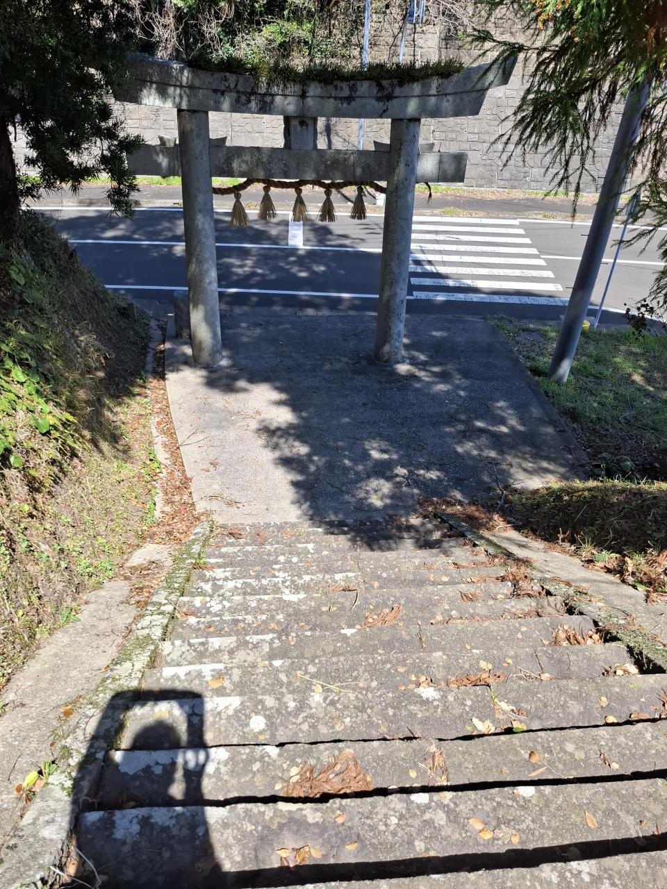 しばし湾沿いを北上すると、青島大橋ふもとにたまたま神社を見つけました。