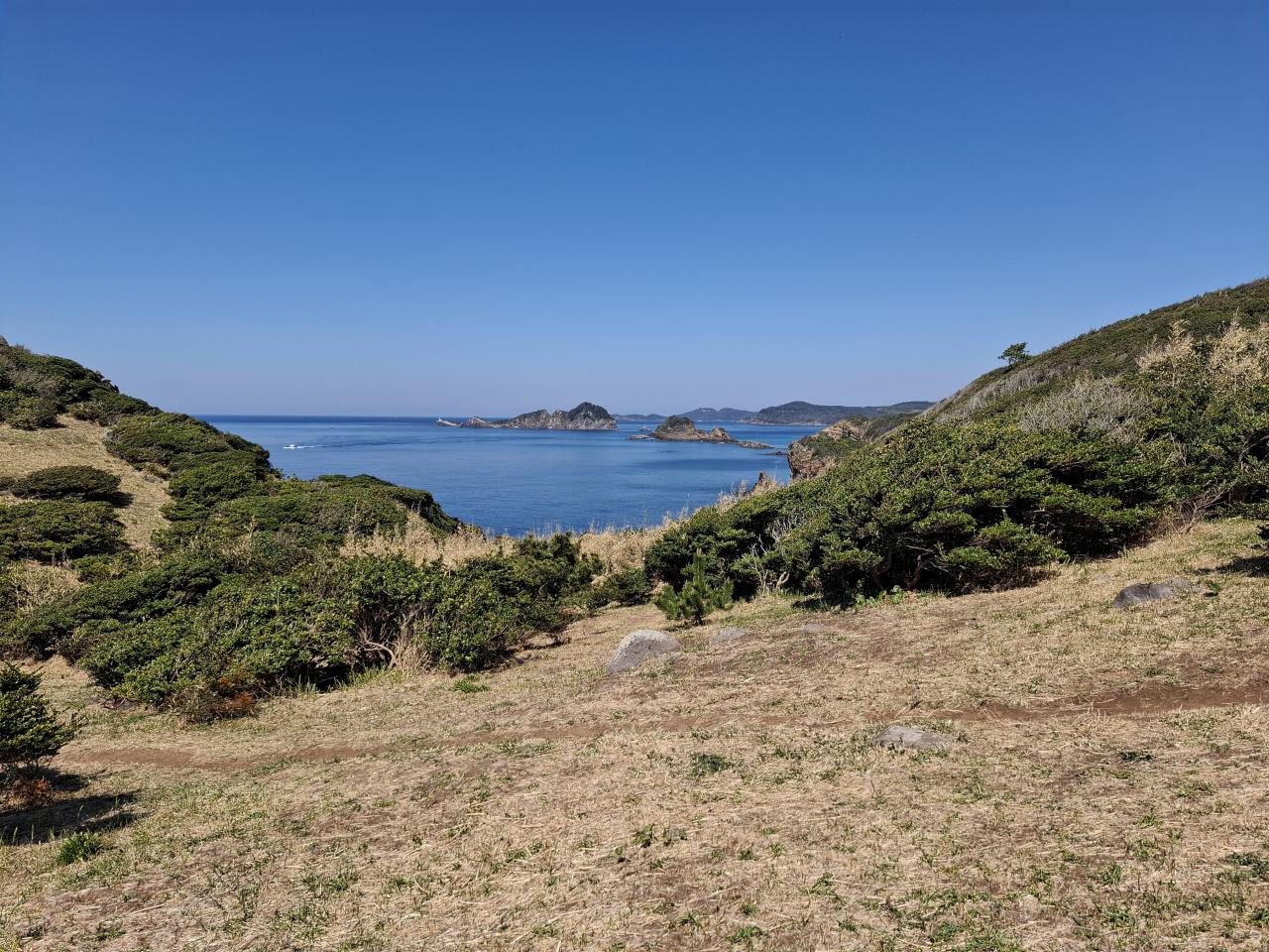 ②翌日は、東方面を回り、さらに絶景と出会うことができました。赤瀬鼻で、気合を入れたトレッキング状況にも果敢に挑戦したのです。