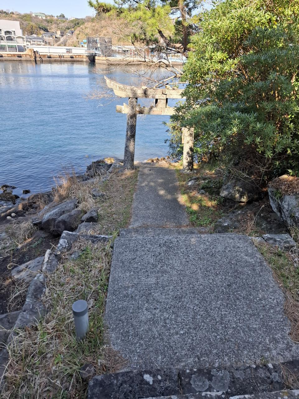 ここも海の途中まで石段がある、見事な海神ロケーションです。ご祭神には、天照大神や事代主がおられるようです。