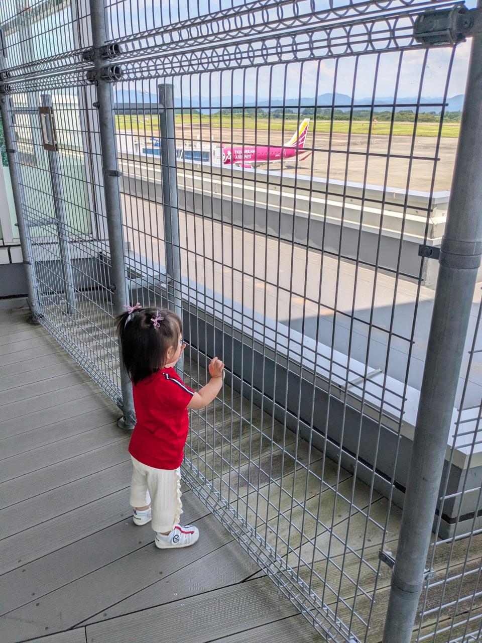 孫1号と初夏の沖縄中部の3泊4日旅行の初日、快晴の静岡、富士山静岡空港の有料駐車場(500円/日 4日間で2千円後払い)に停める。