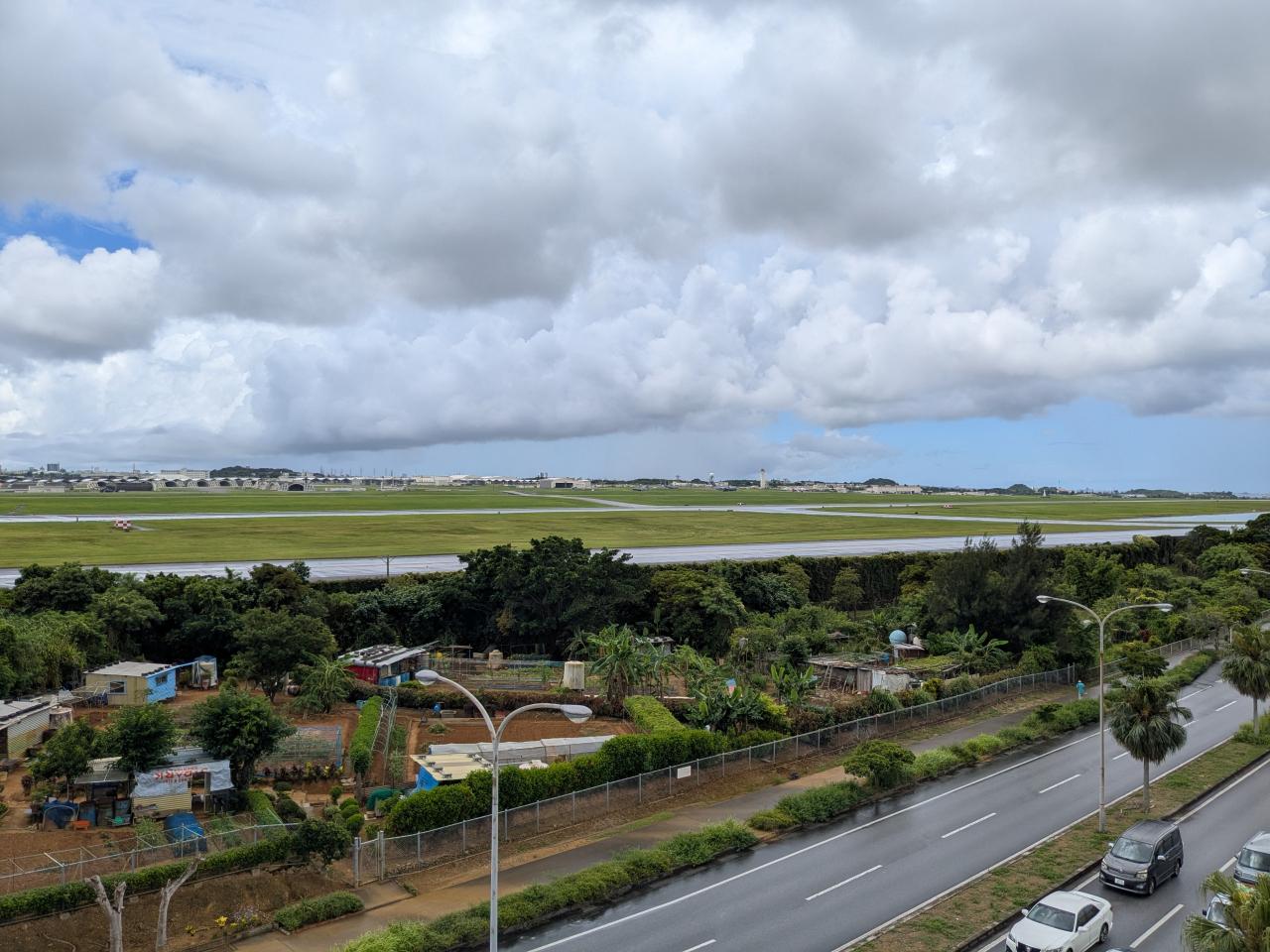 スコール後の快晴の那覇空港に着陸。