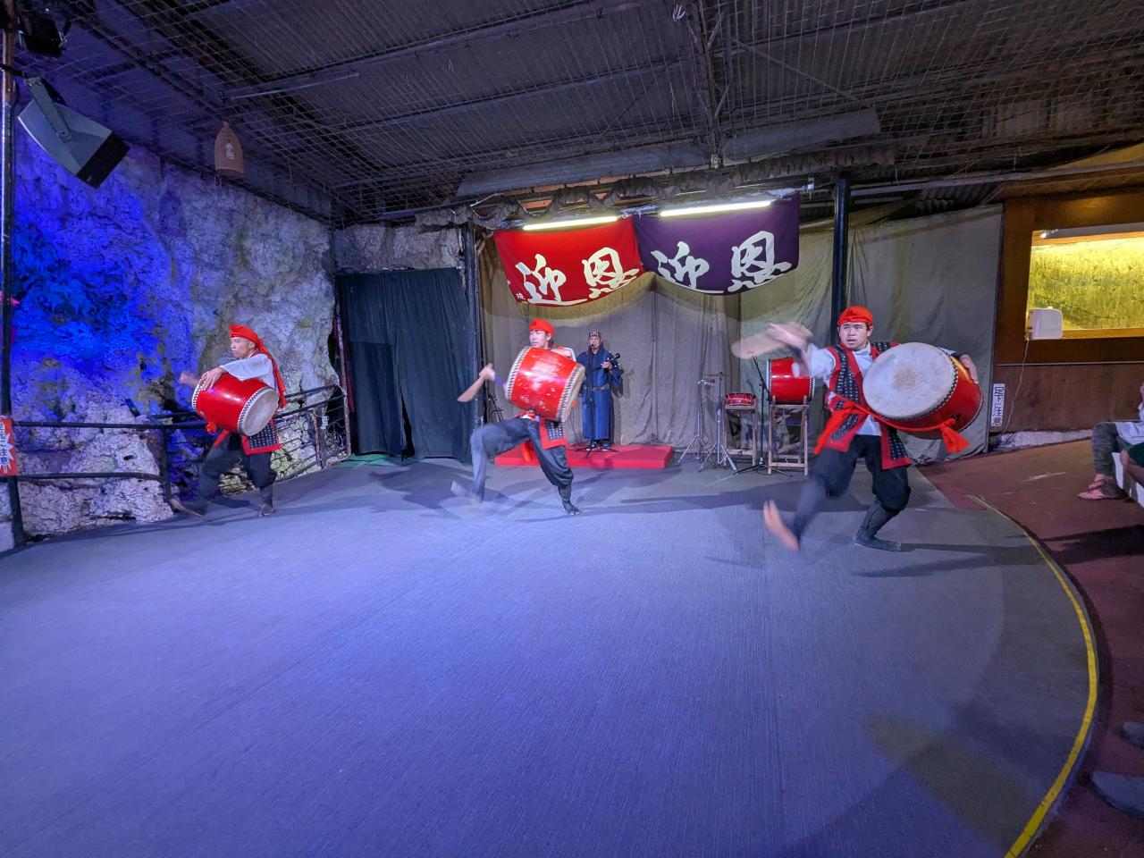 この日もとても暑かった。戸外の琉球村はとても暑かったが、冷房の効いた館内のエイサーショウはとても涼しく過ごせた。
