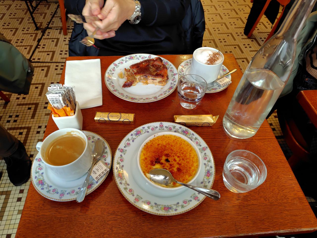sukecoはクレームブリュレ(8.50ユーロ)とアメリカン(6.70ユーロ)、sukeco夫はチェリーのタルト?(8.00ユーロ)とカプチーノ(7.70ユーロ)。
