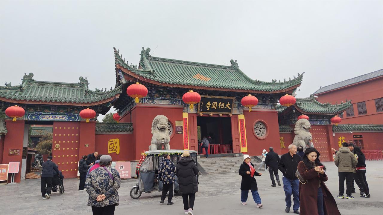 鄭州2日目、東に70kmほど離れた開封の清明上河園へ滴々で向かいしました。高速道路を使って約1時間で着きました。ここでも入場手続きはパスポートで行います。入場券は3日間有効で、夜間には別途予約が必要な大規模なショーが行われるようですが、2時間ほど園内を散策してから、市内を少し歩き、開封の「第一楼」に灌湯包を食べに行きました。灌湯包は開封発祥で、小籠包より一回り大きいものです。食後は大相国寺まで歩き、寺院を見学しました。堂内は撮影禁止です。開封は、他に龍亭公園、鉄塔などの観光場所もありますが、歩き疲れたので滴々を呼んで鄭州まで戻りました。滴々は行きと帰りで料金が大きく異なりました。行きが120元、帰りが200元ほどでした。それでもタクシーの半額近くかと思います。夕食は鄭州のホテルのレストランで取りました。